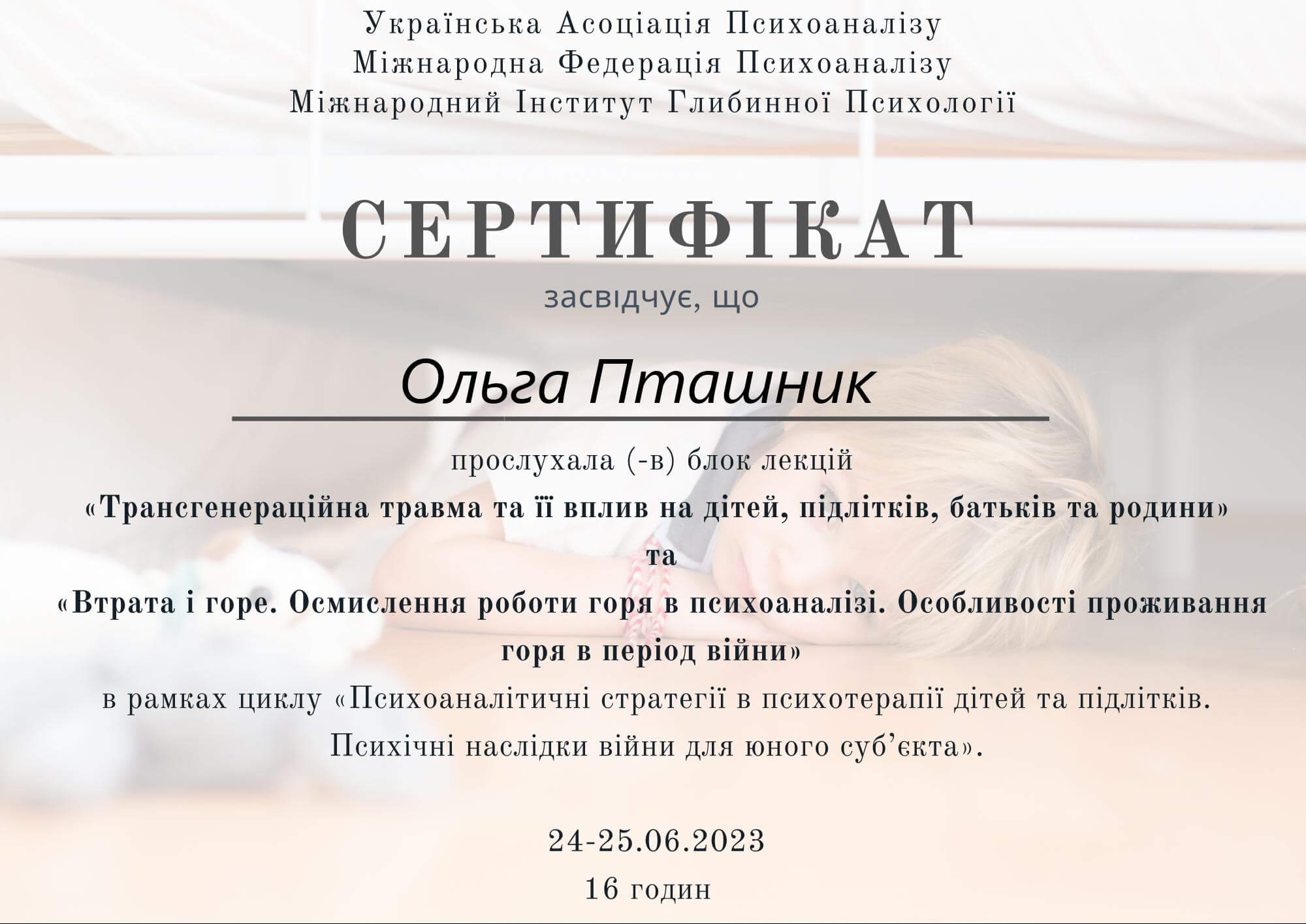 «Техніка психоаналітичної роботи з дітьми. Психоаналітичний супровід дітей та їх батьків під час війни».