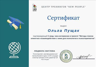 Знаходжусь у постійному процесі навчання новим технологіям та методам у сфері психології та роботи з клієнтами, а також успішно застосовую на практиці всі отримані мною знання та навички.
