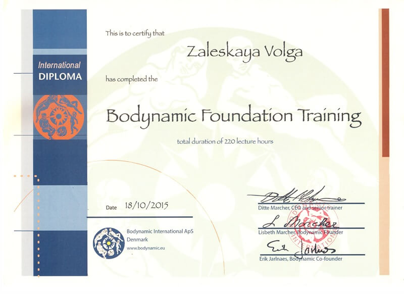 2013-2015 рр. Bodynamic Foundation Training, E. Jarlnaes