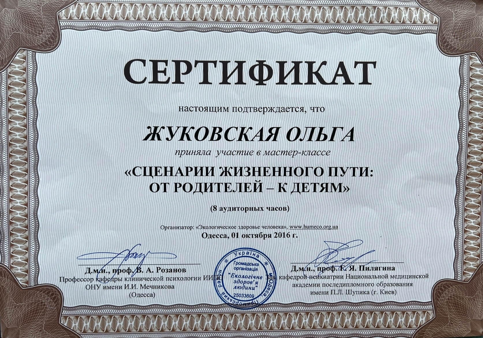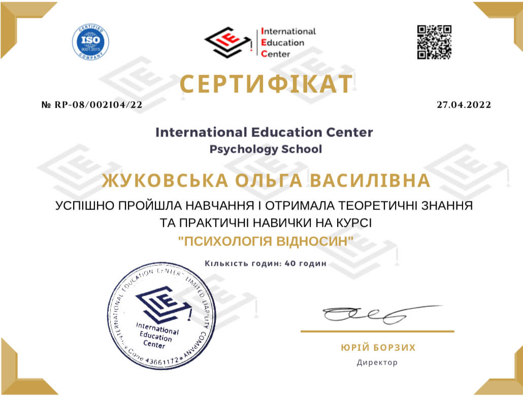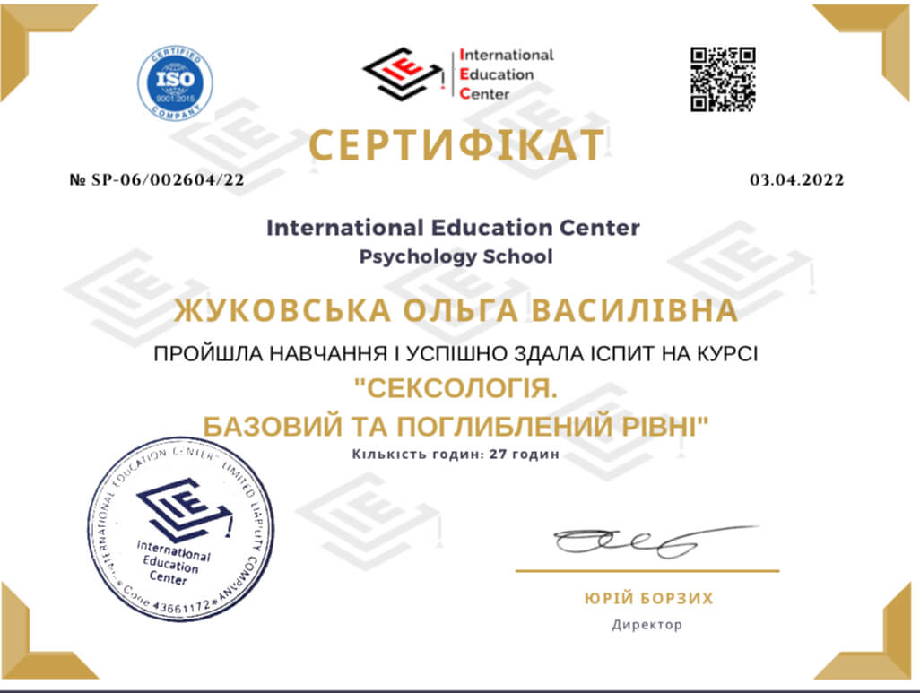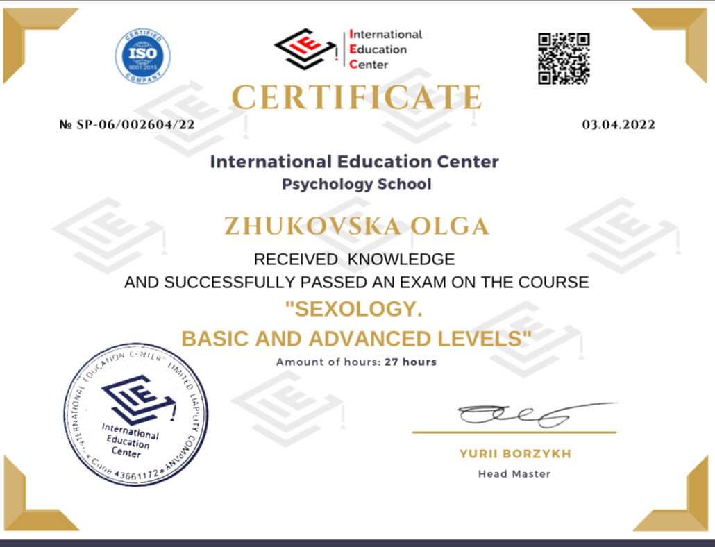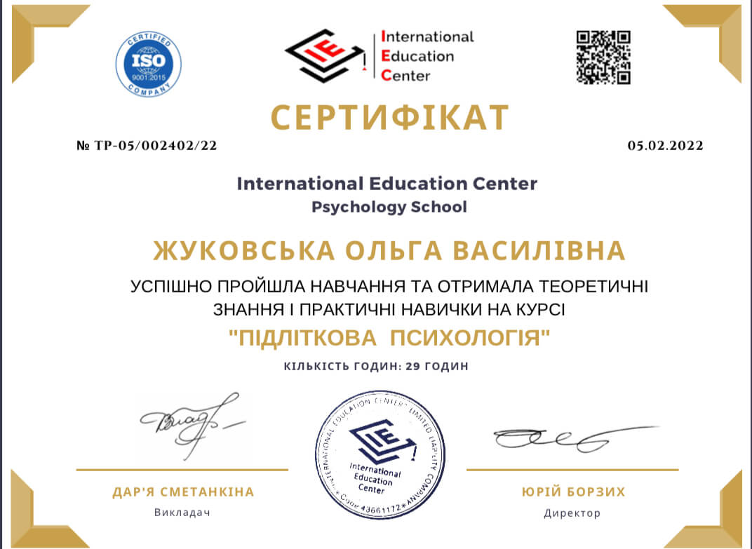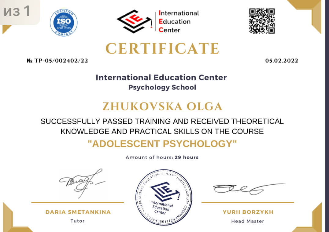 Спеціальності: «Психосоматика. Робота з тілесними феноменами у ДП», «Робота з сексуальною тематикою», «Вікові кризи», «Підліткова психологія»