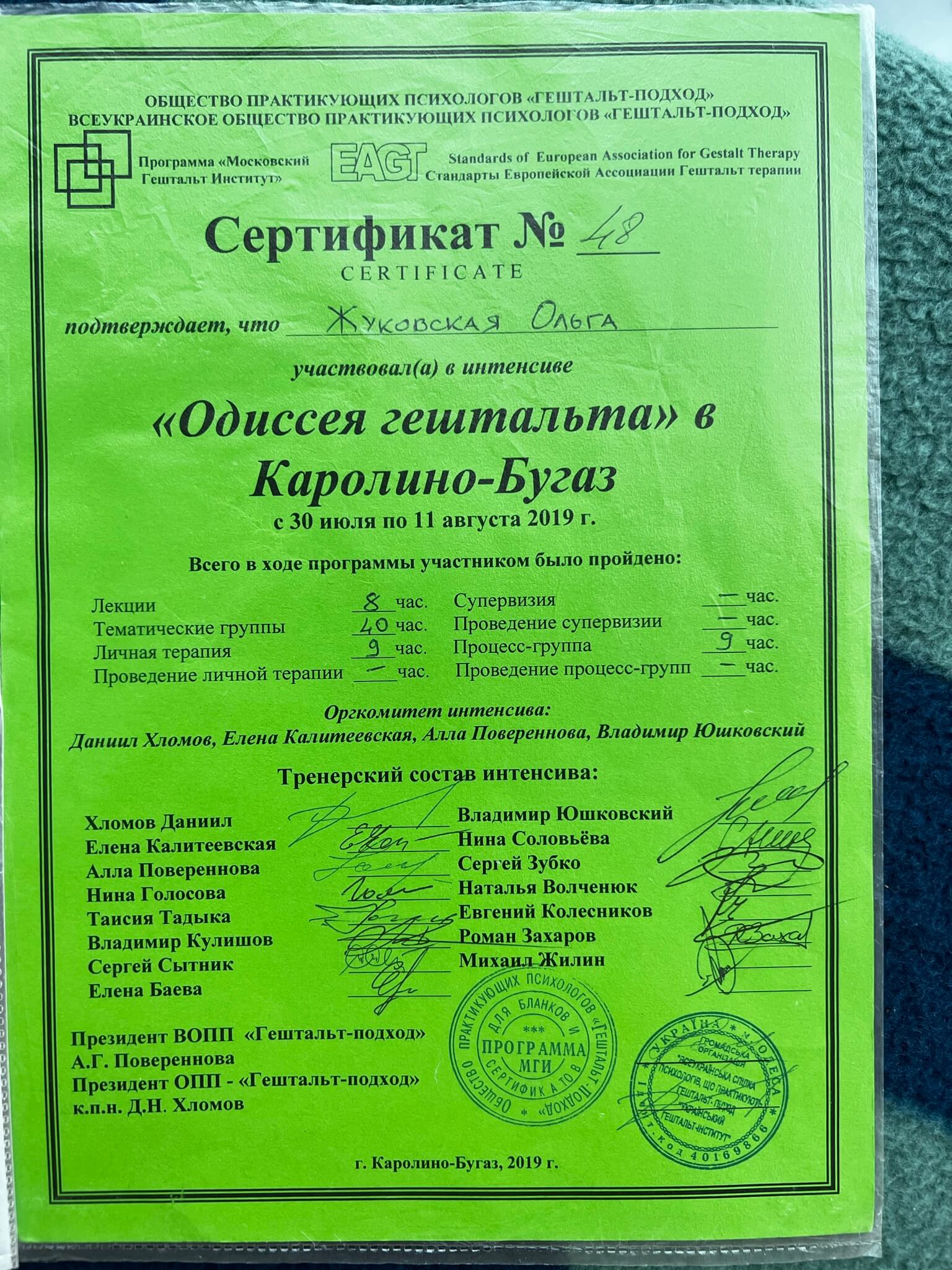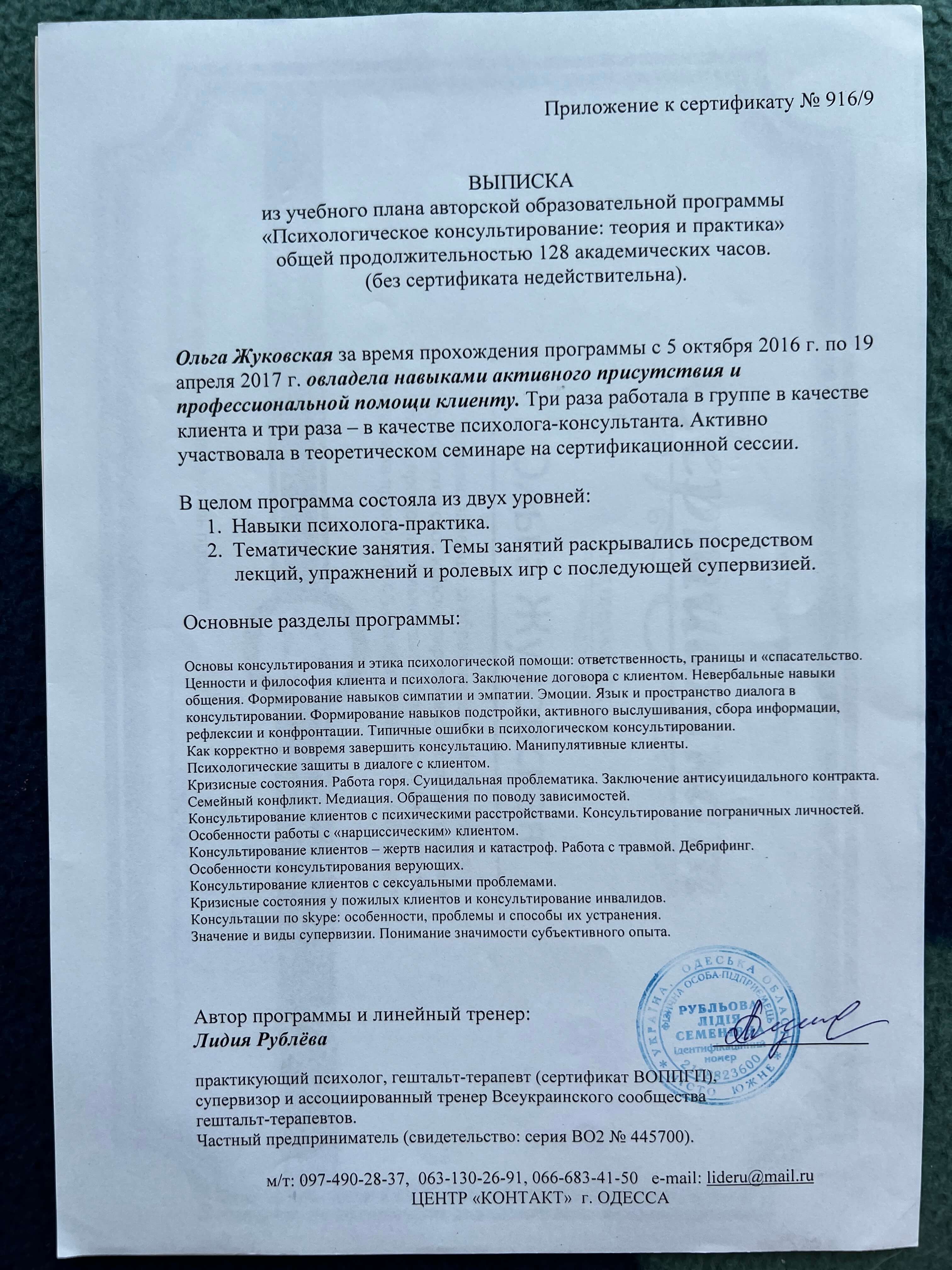 Вітаю! Мене звуть Ольга Жуковська, практикуючий психотерапевт, супервізор. Працюю у гештальт підході. Рада бути корисною.