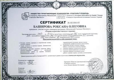 Київське представництво МГІ, сертифікат гештальт-терапевта від 04.2012 р.