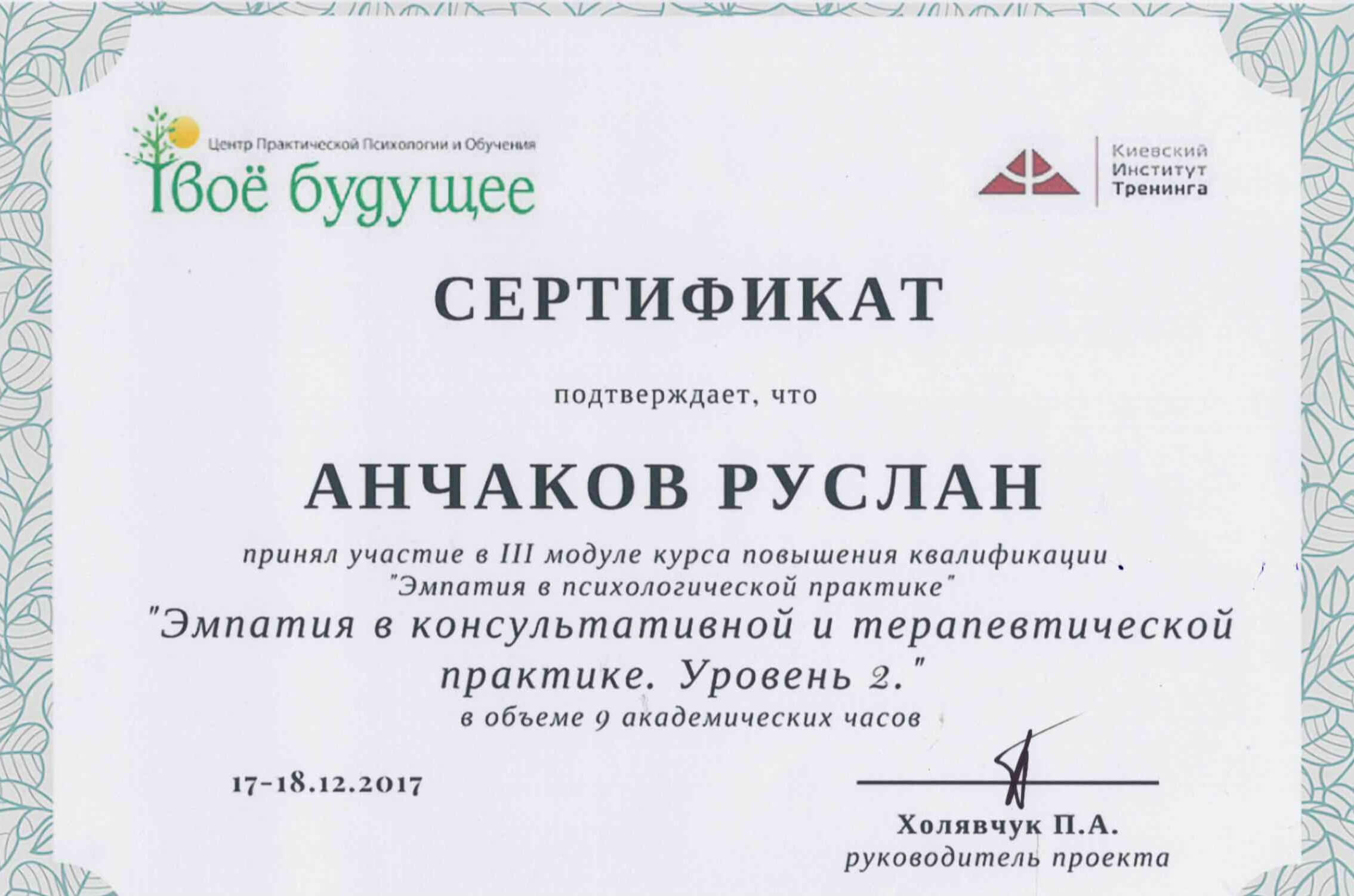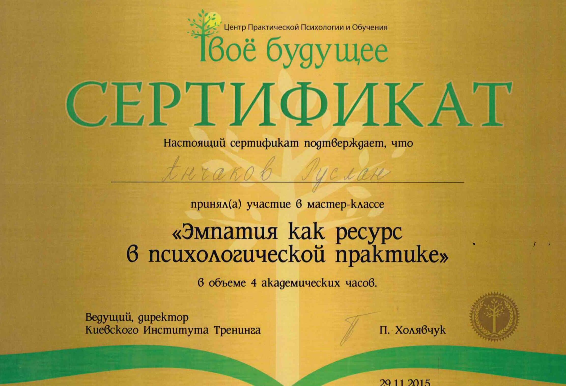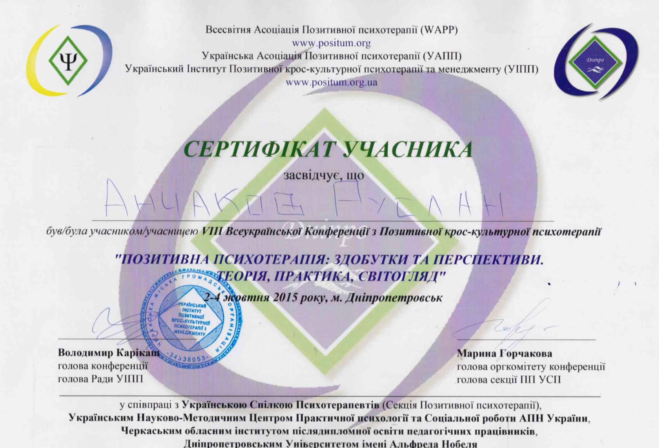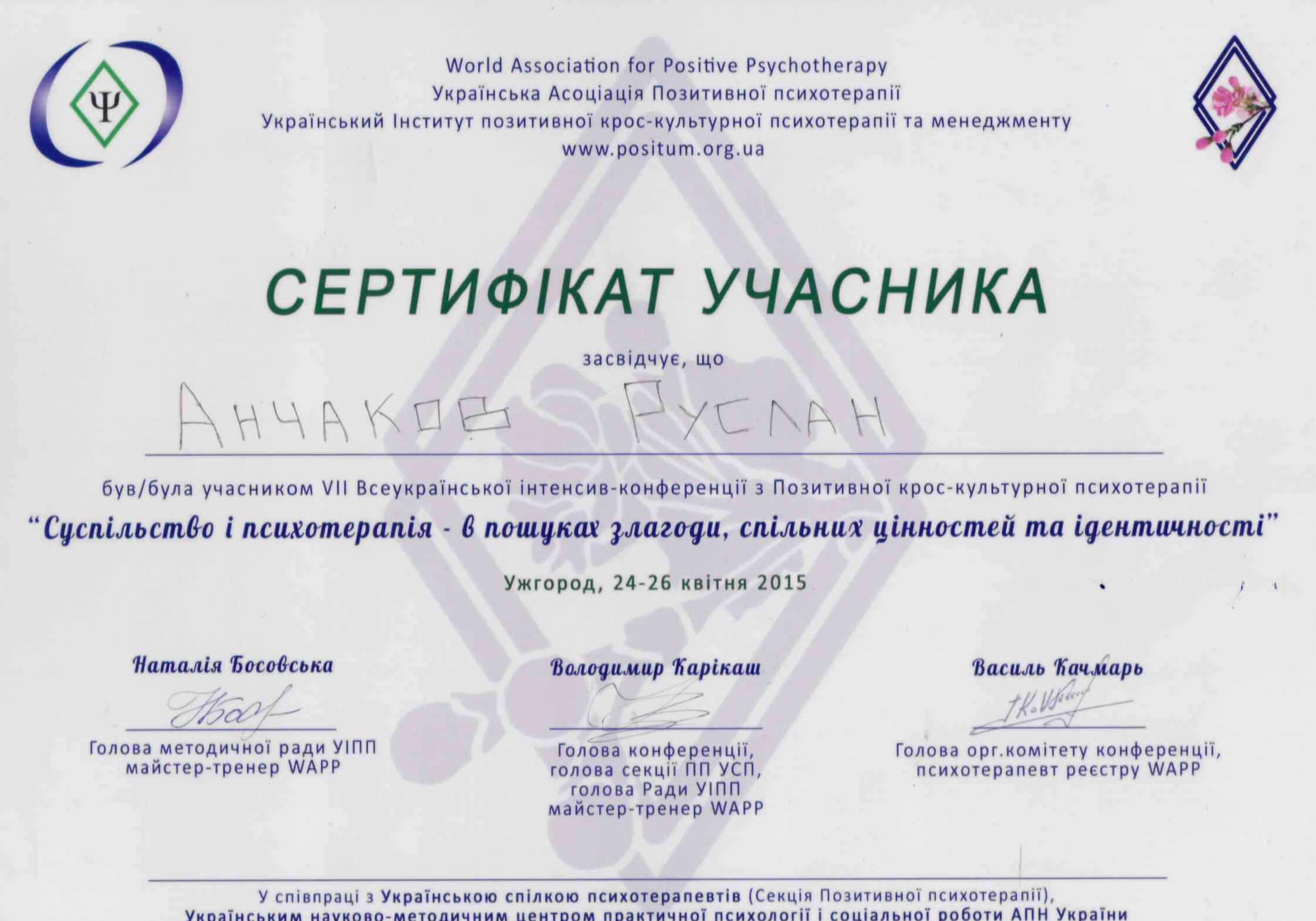 Зараз завершую навчання на психотерапевта у методі Позитивна Психотерапія Н. Пезешкіана