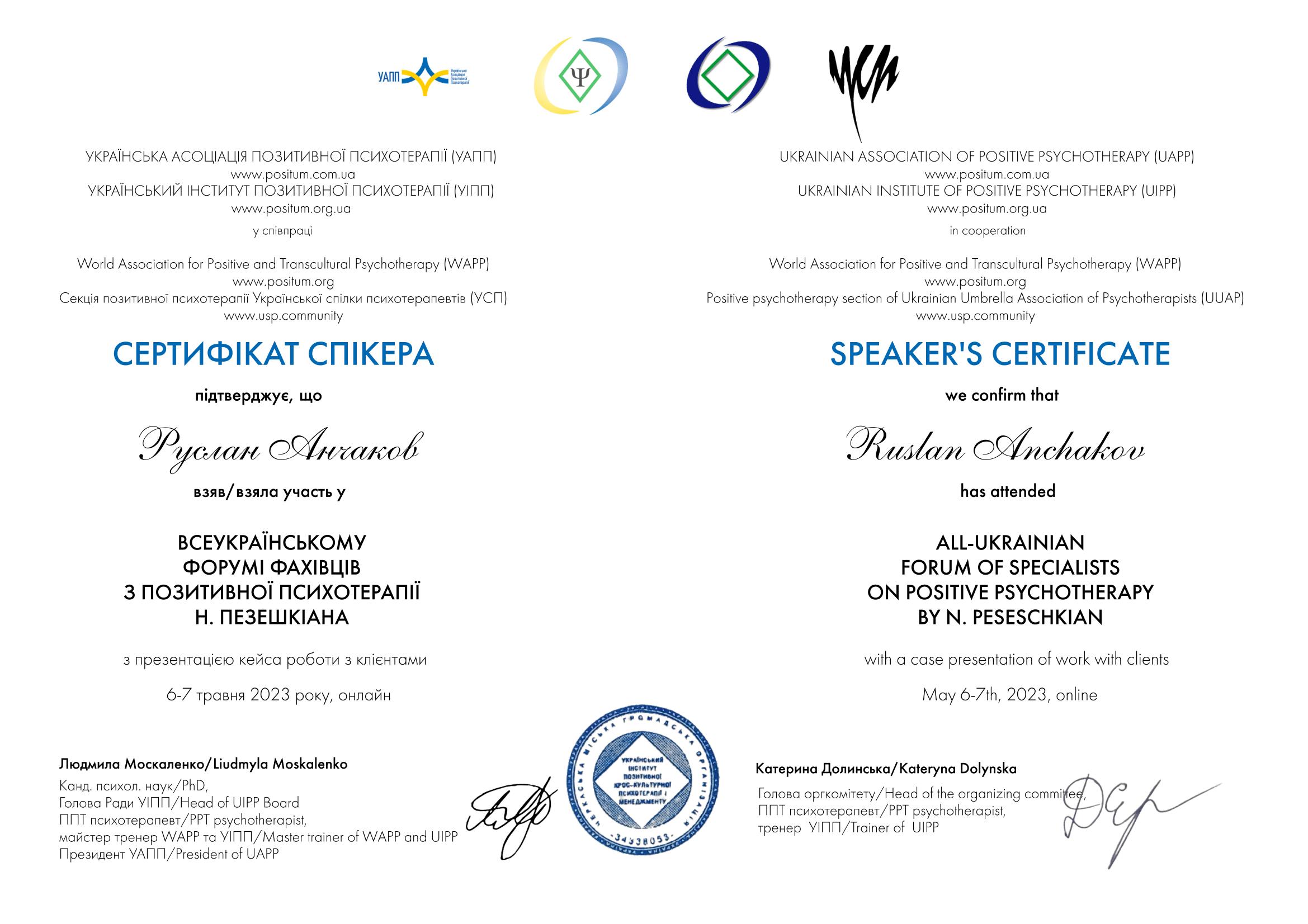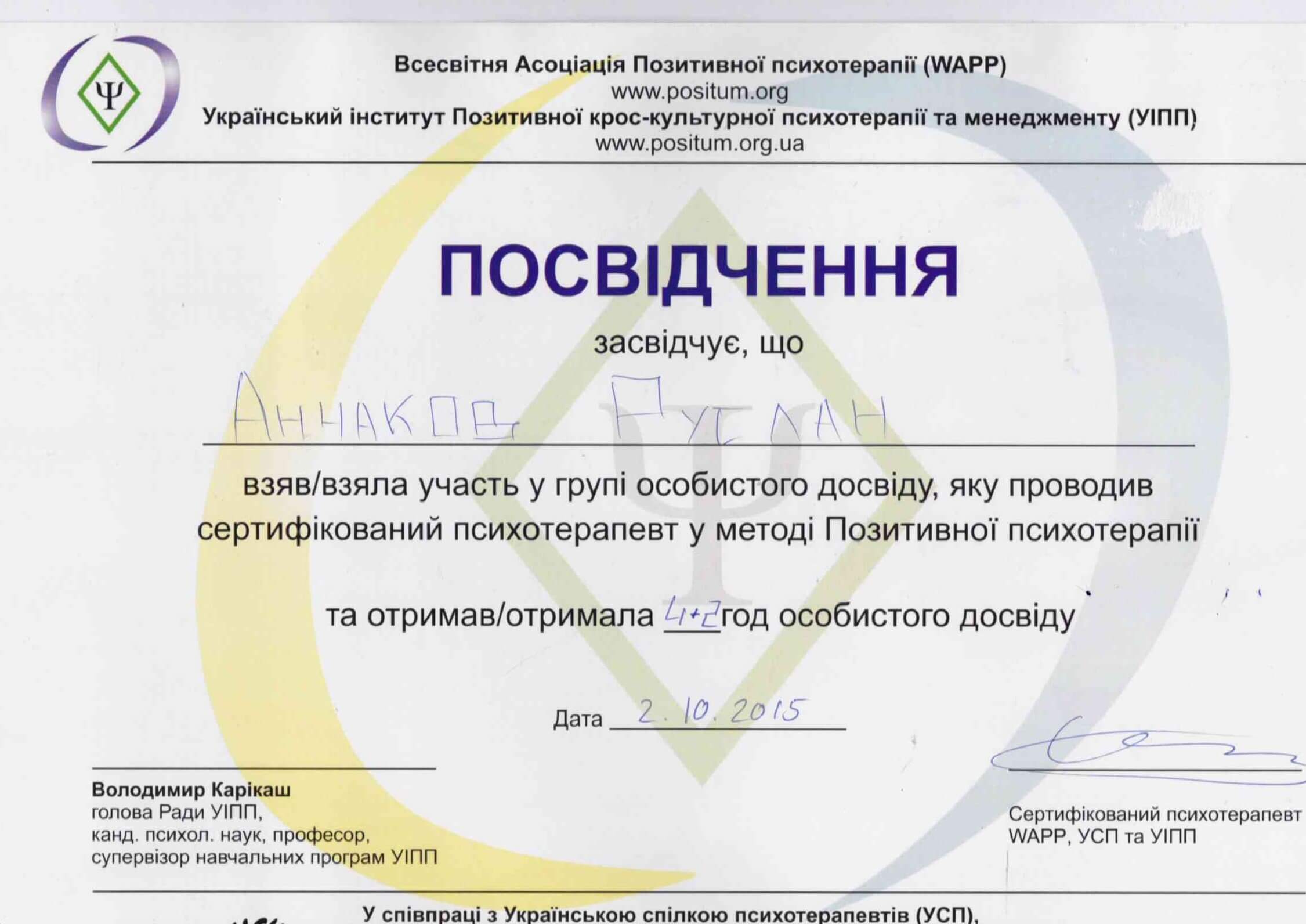 - Психотерапевт в методі Позитивна Психотерапія - 810 год