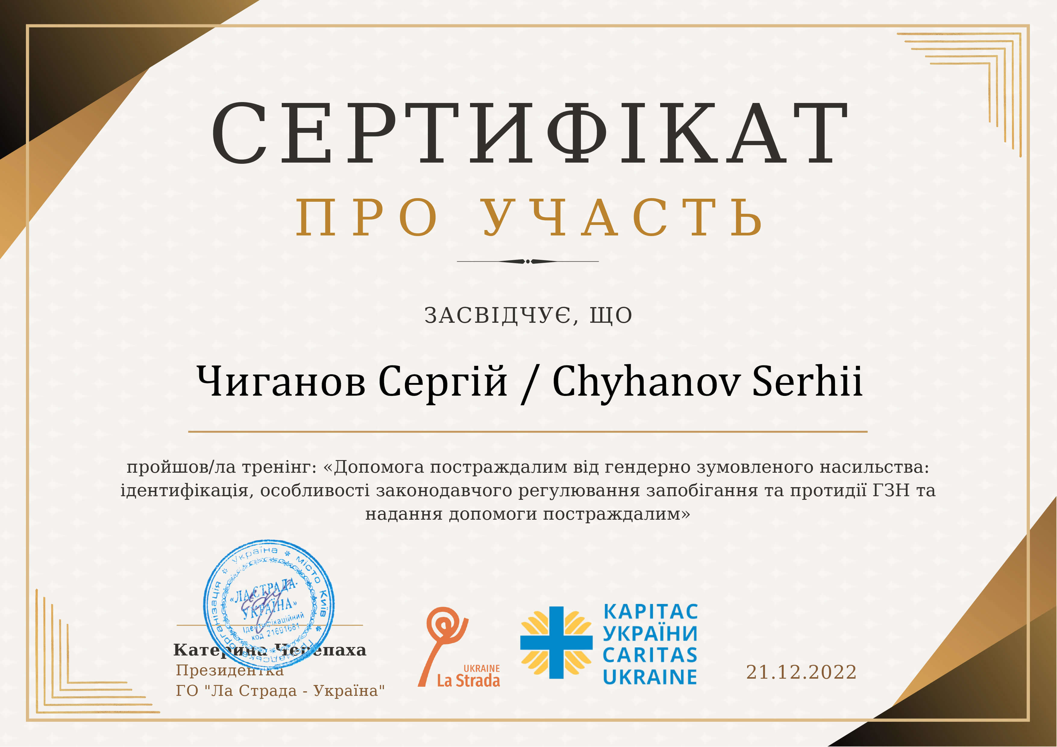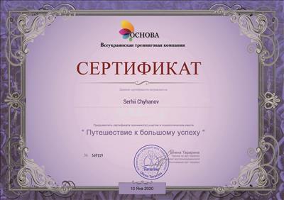 Сертифікат на 100 годин проходження навчання лікуванню РПП