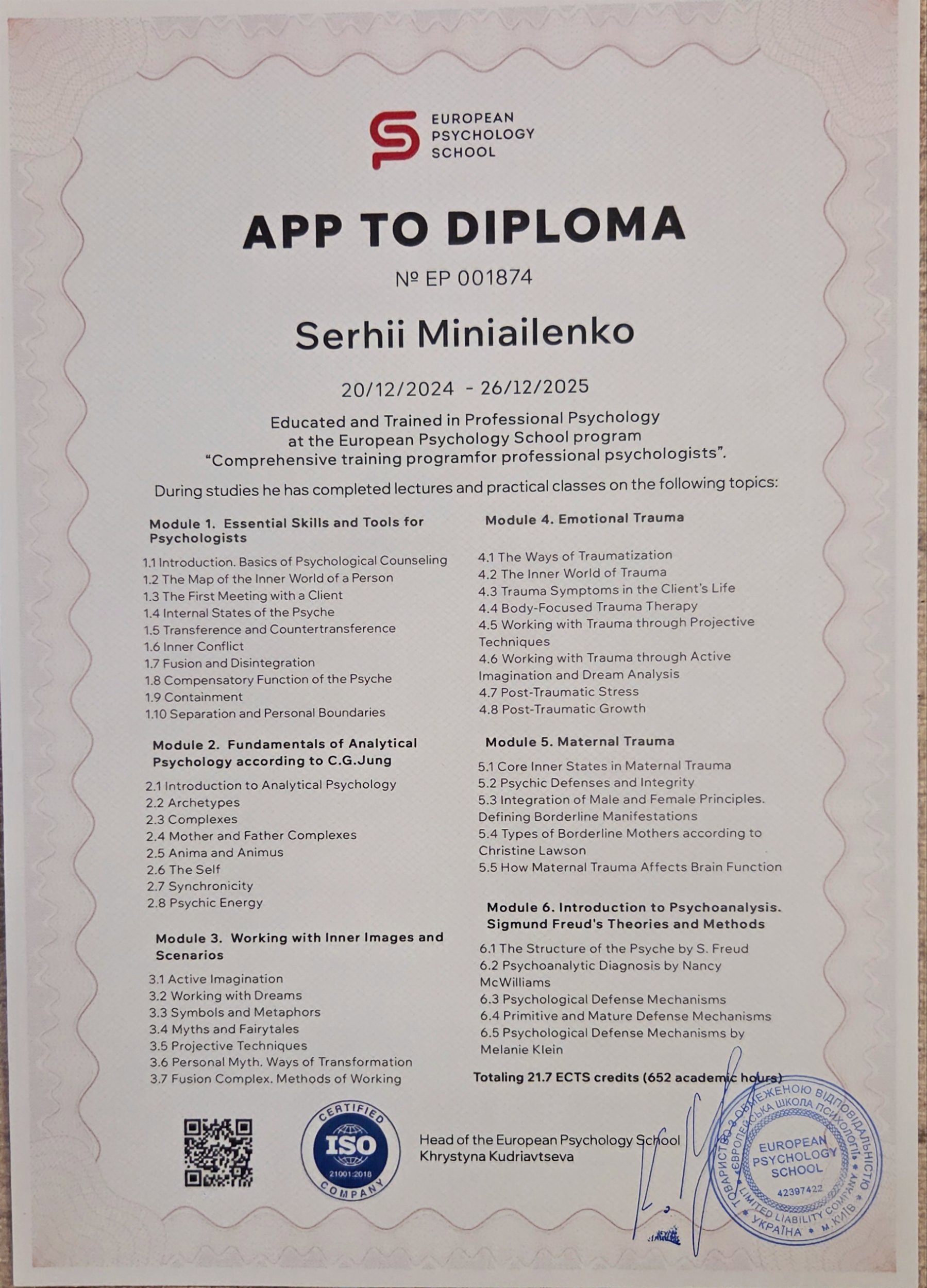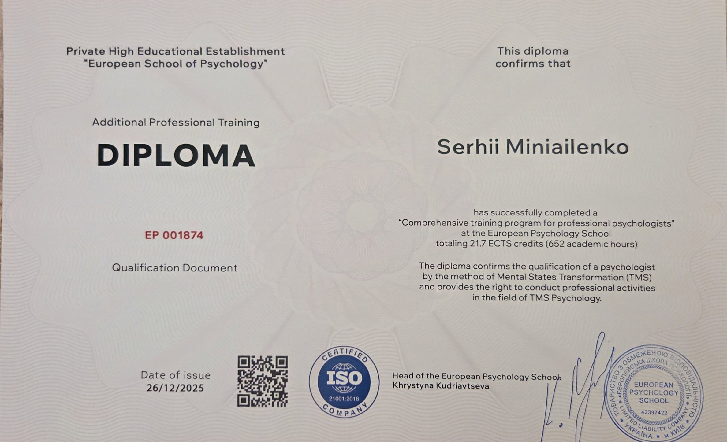 European Psychology School (EPS), Україна.