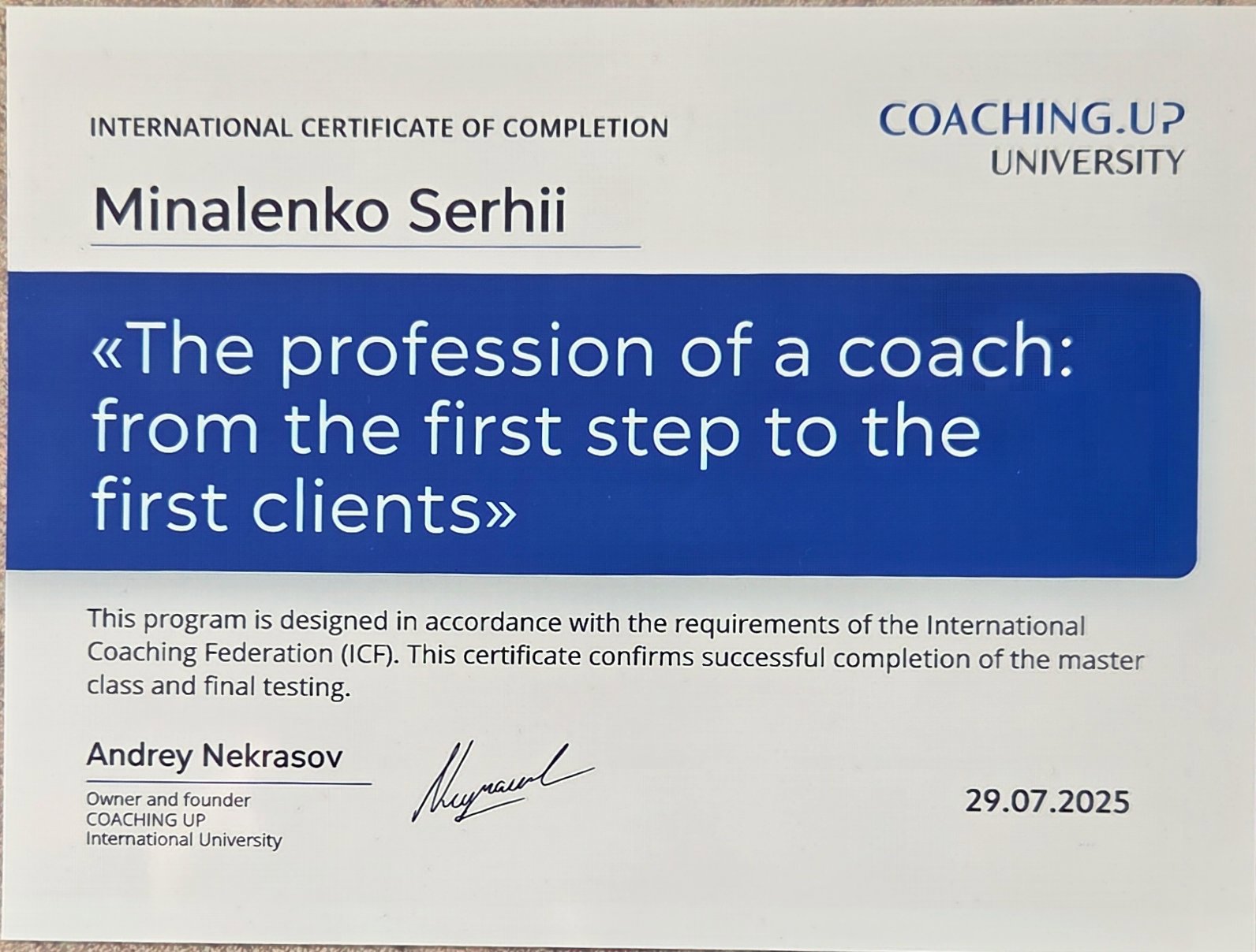 Паралельно я проходжу навчання з коучингу та маю практичний досвід у сфері волонтерської психологічної допомоги в кризових ситуаціях. Постійно вдосконалюю навички роботи з емоційним вигоранням, тривожними станами та питаннями самооцінки через супервізії та спеціалізовані курси.