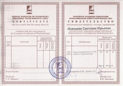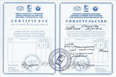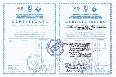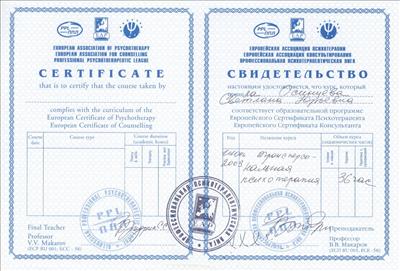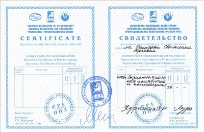 European Certificate of Psychotherapy / European Certificate of Counselling