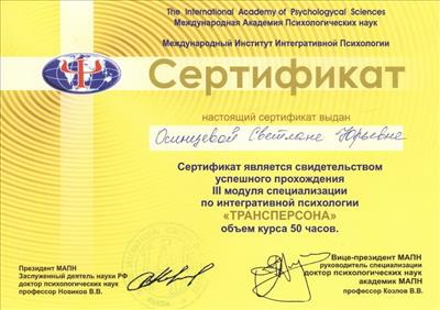 III модуля специализации по интегративной психологии «ТРАНСПЕРСОНА»