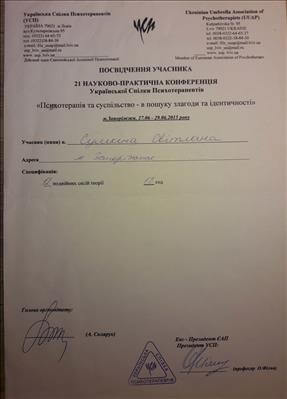 Участь у щорічних конференціях УСП, ЮВІП, ЗНТУ як слухач, а також проведення своїх майстер класів.