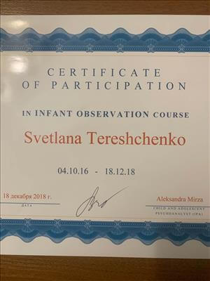 - Дворічна програма «Психоаналітичне спостереження за немовлятами за методом Естер Бік».
