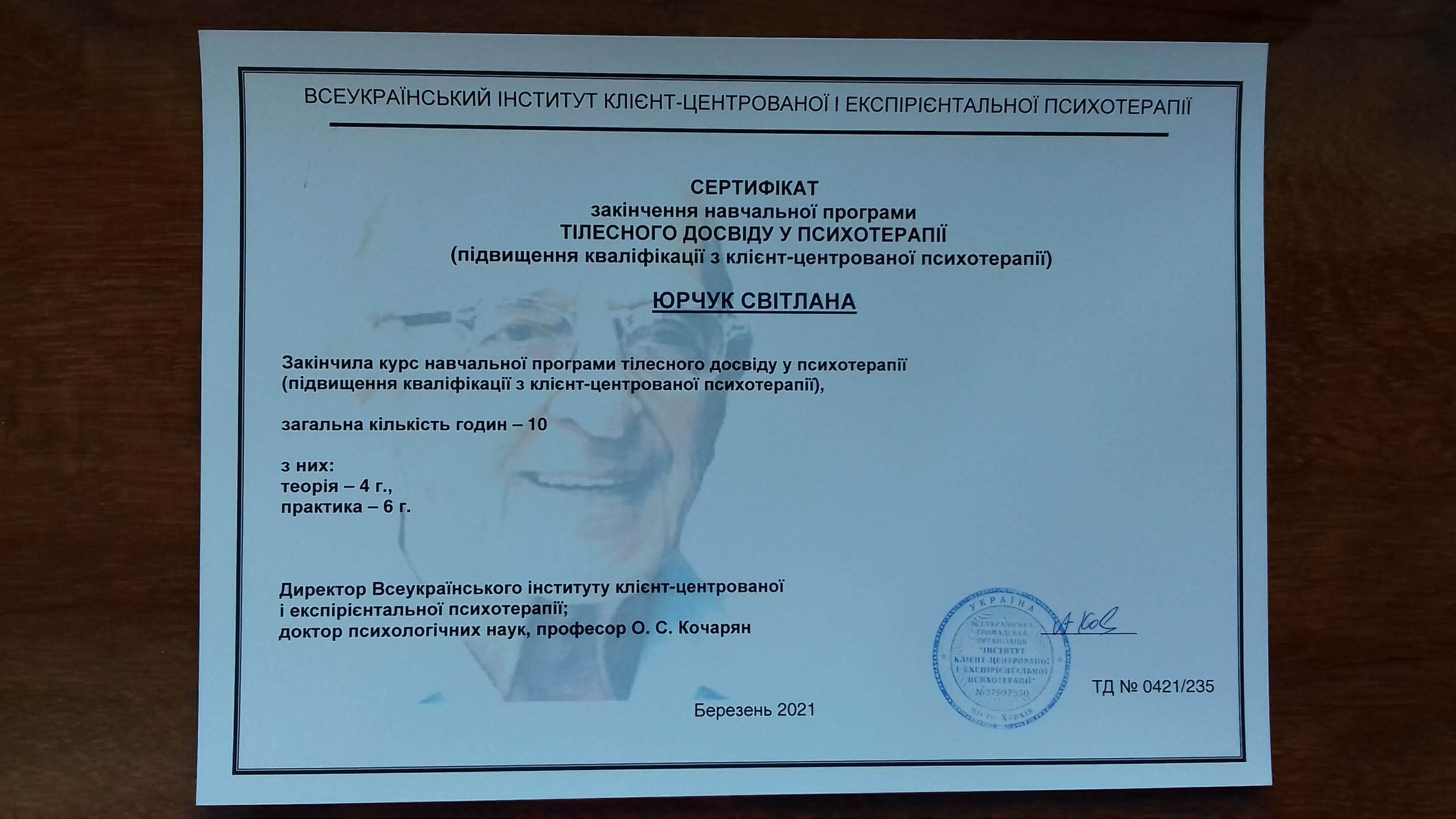 Всеукраїнський інститут клієнт-центрованої та експериентальної психотерапії. П'ятирічний проект.