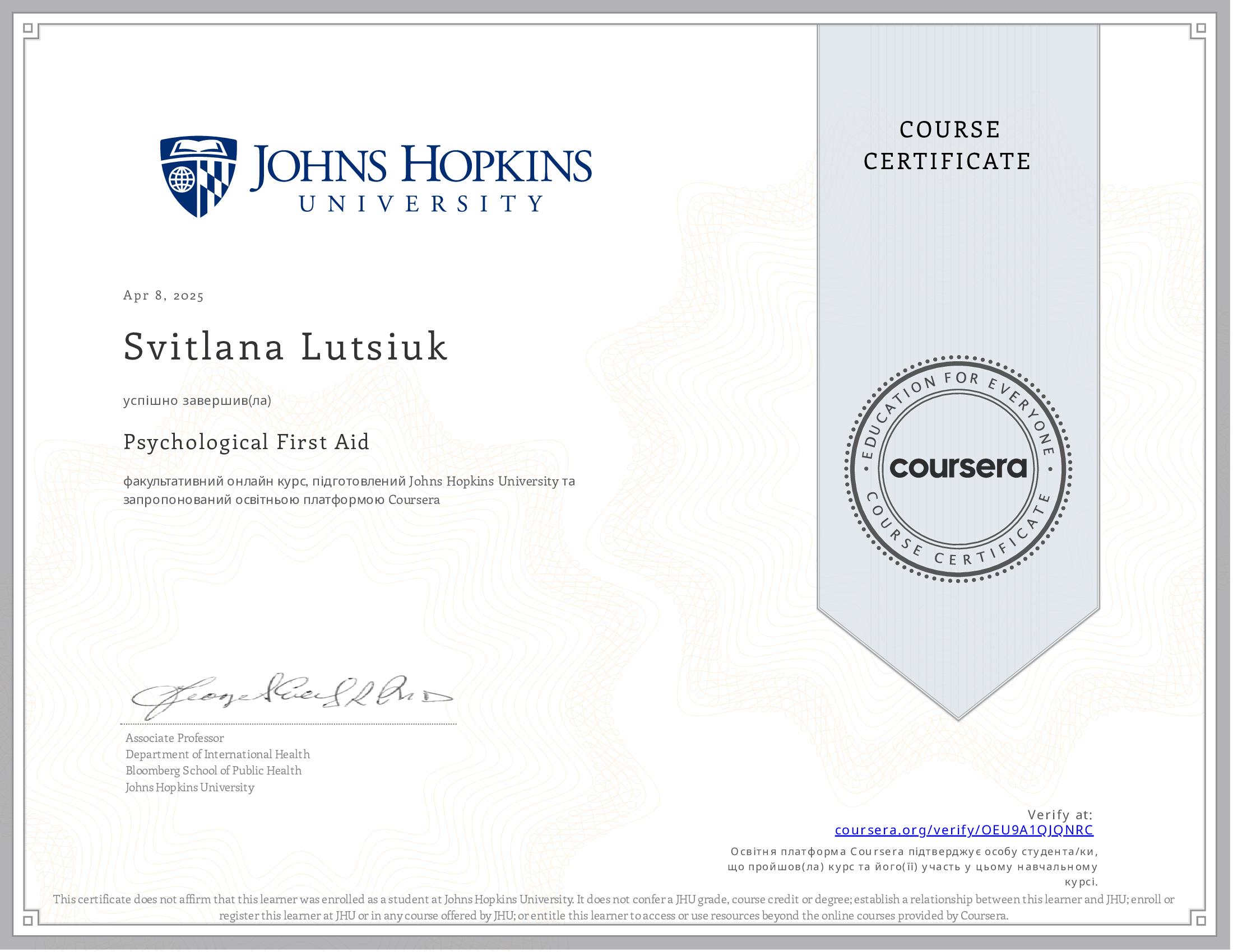 - Регулярно приймаю участь у короткострокових заходах з підвищення кваліфікафії