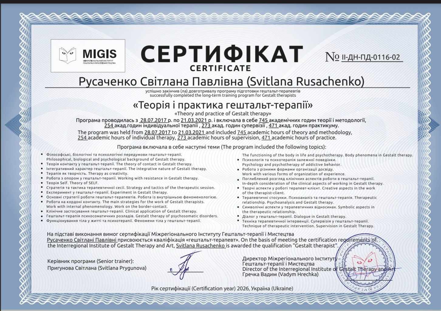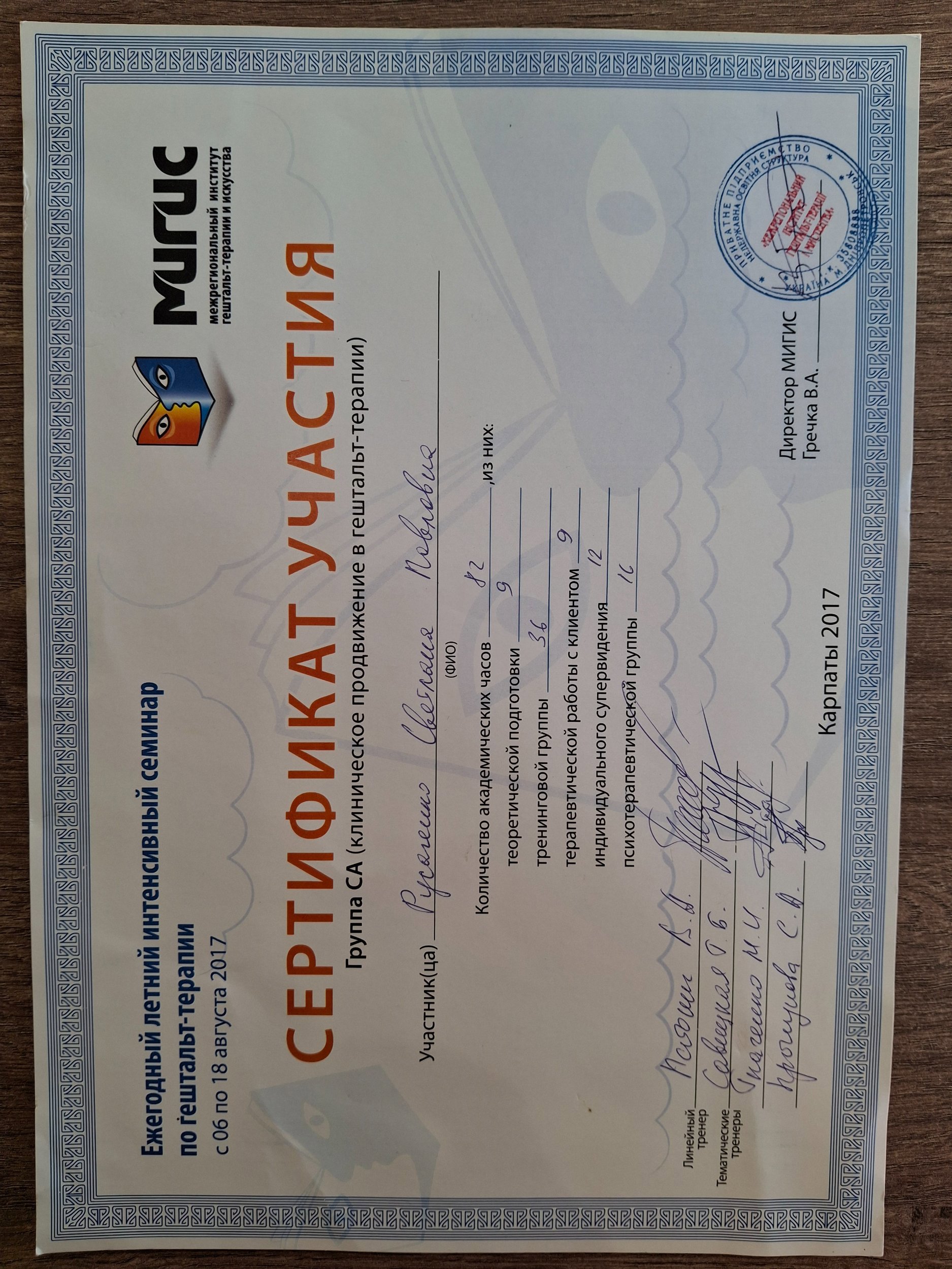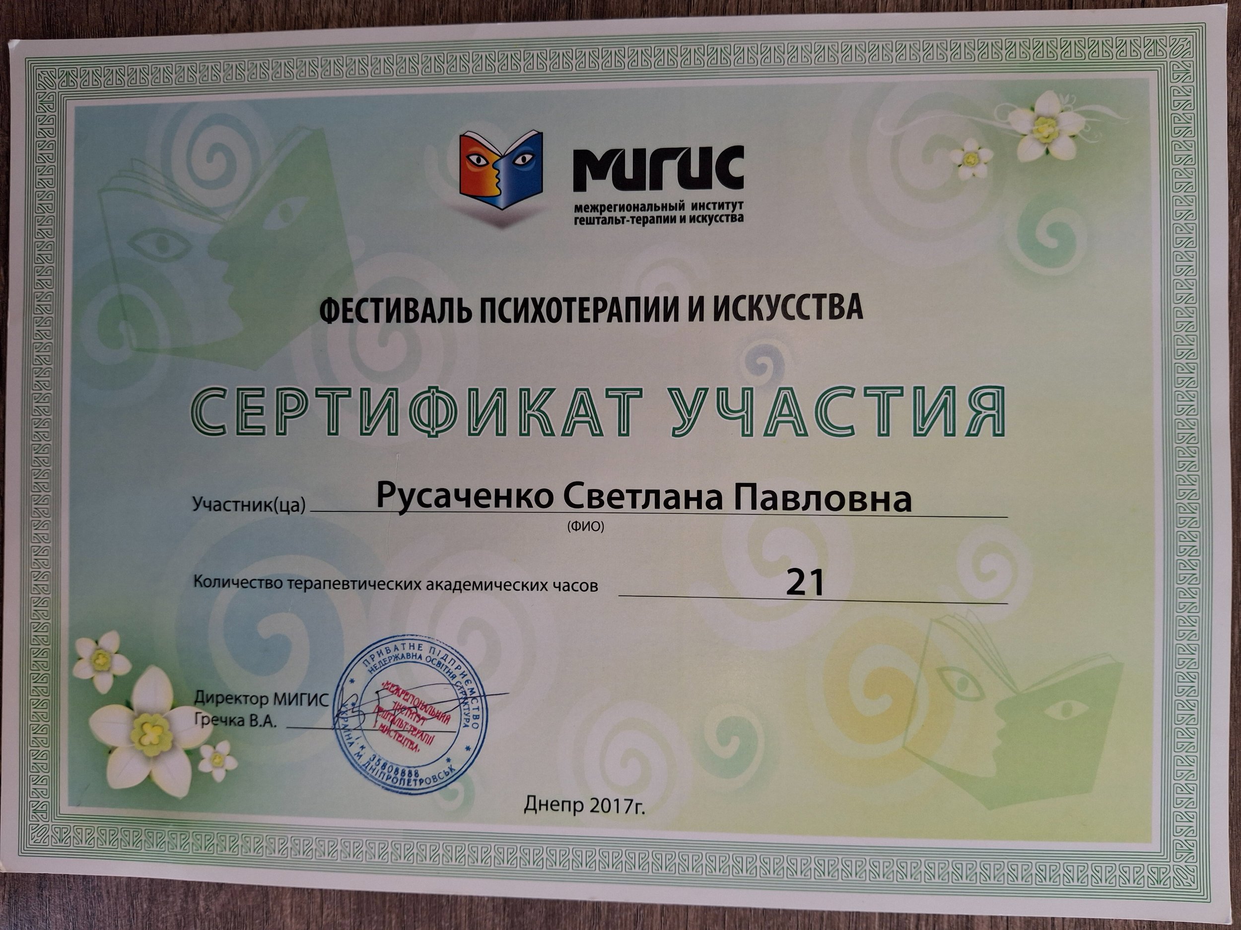 МIGIS, м.Дніпро (Міжрегіональний інститут гештальт-терапії і мистецтва;