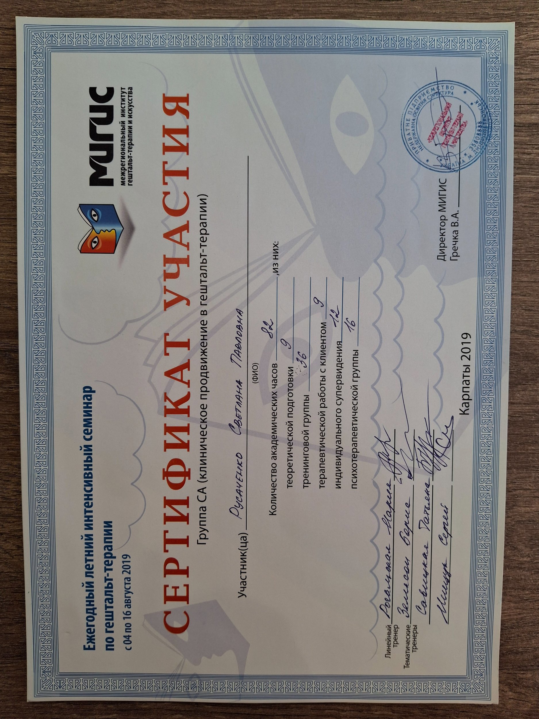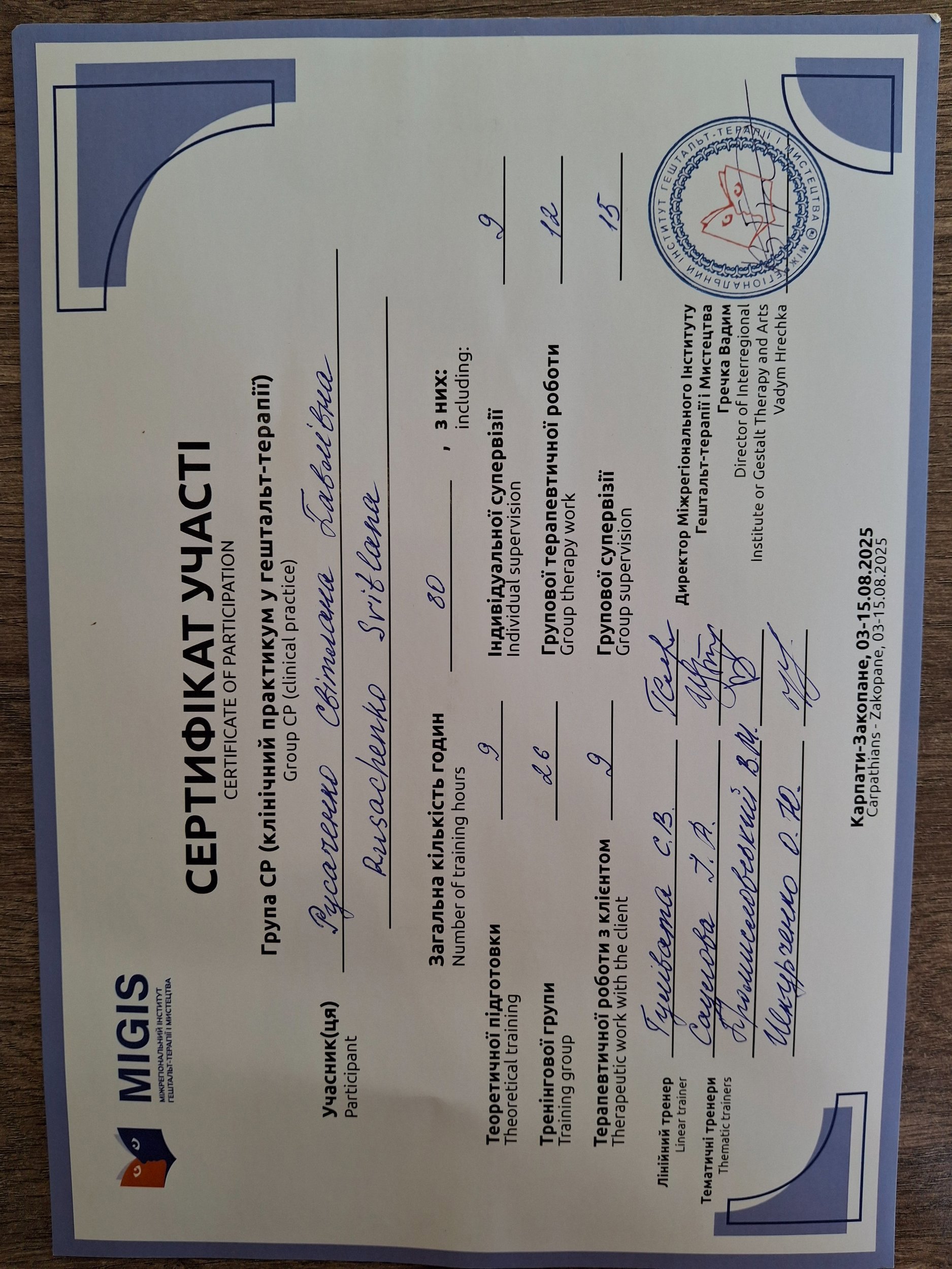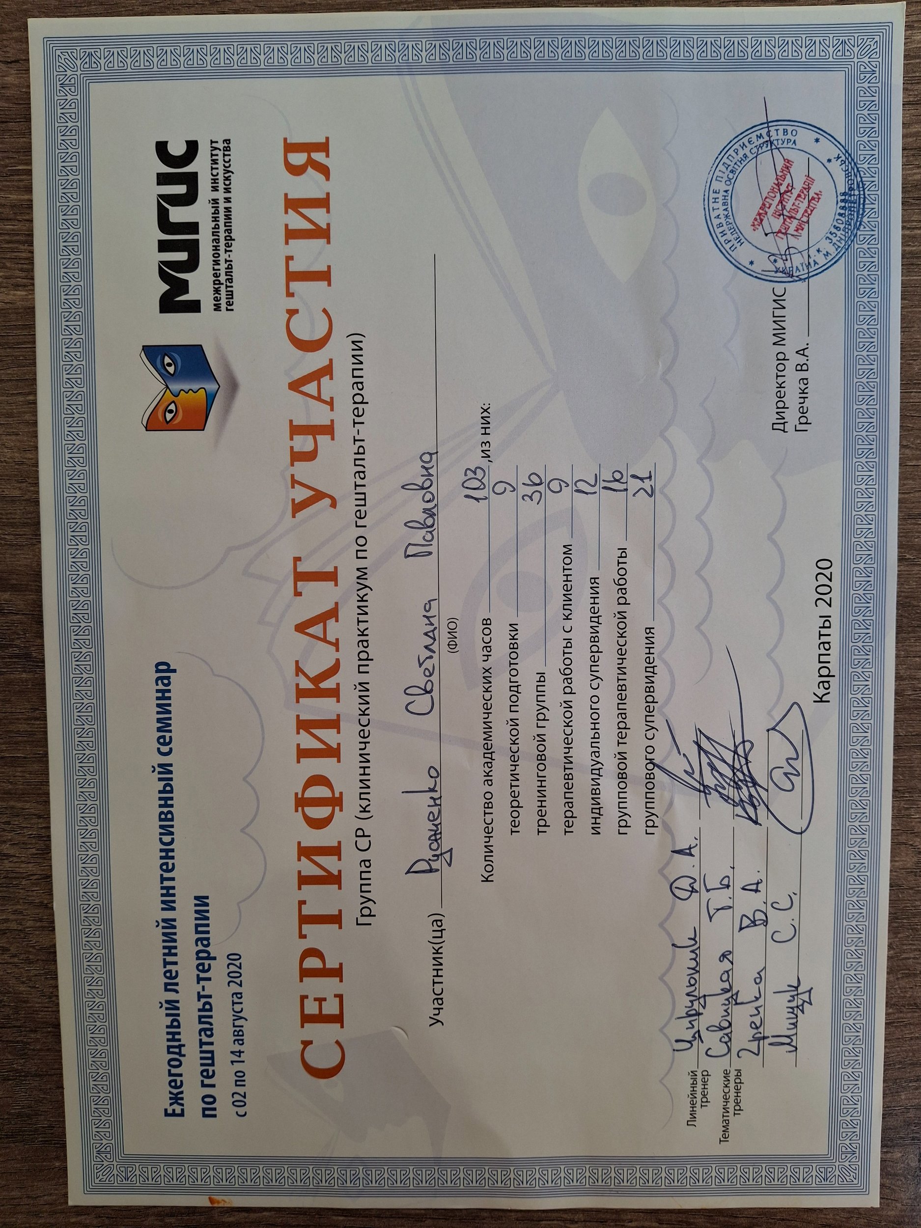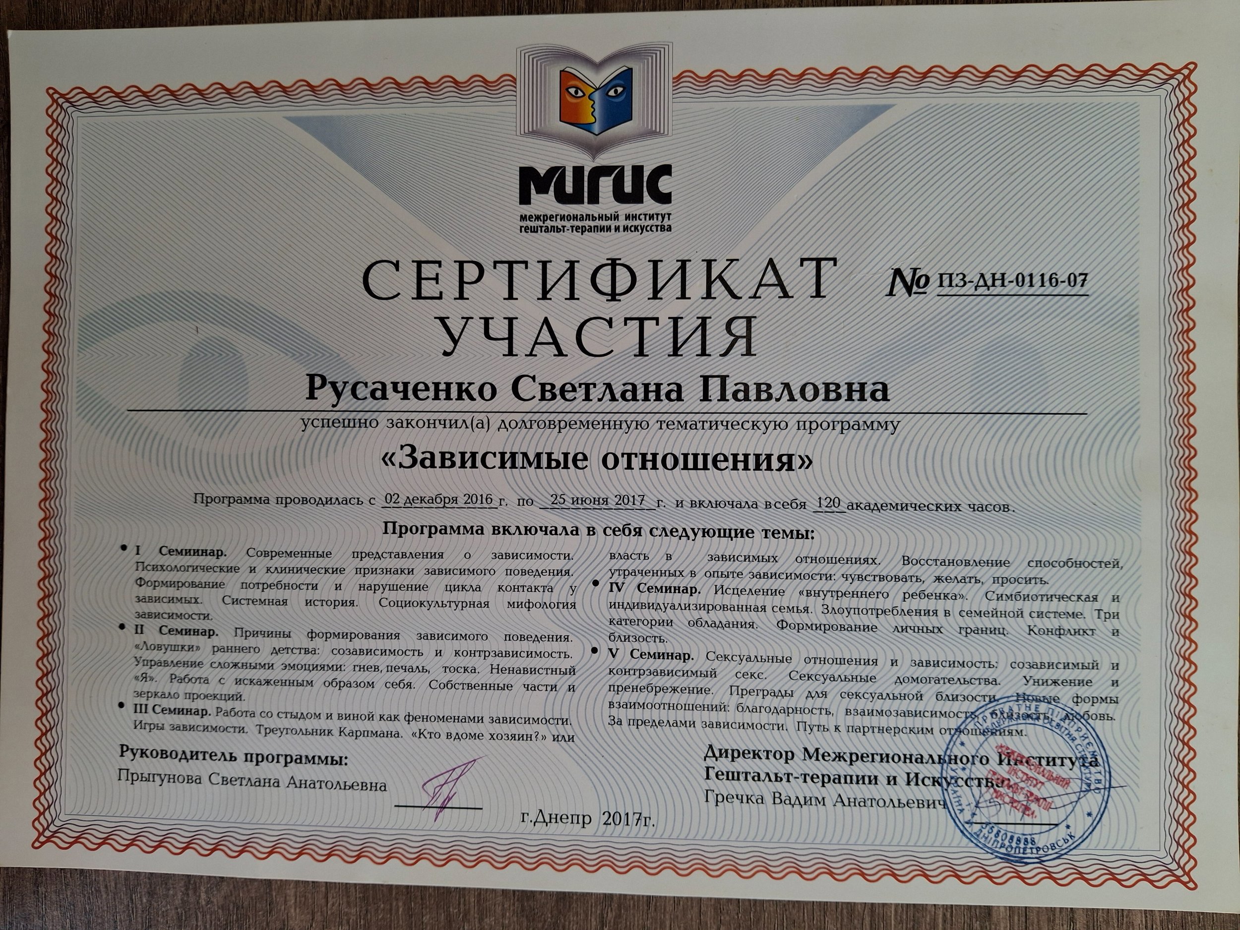 МIGIS, м.Дніпро (Міжрегіональний інститут гештальт-терапії і мистецтва;
