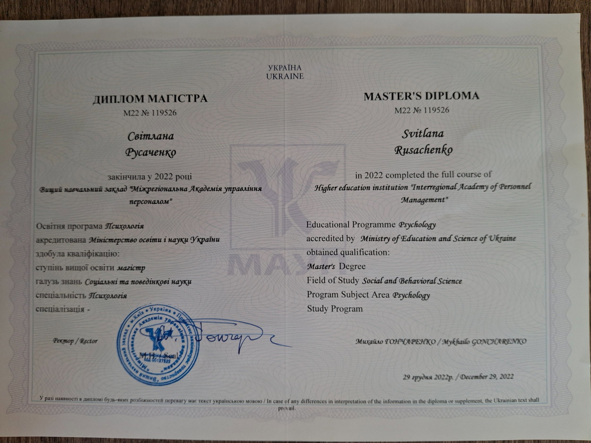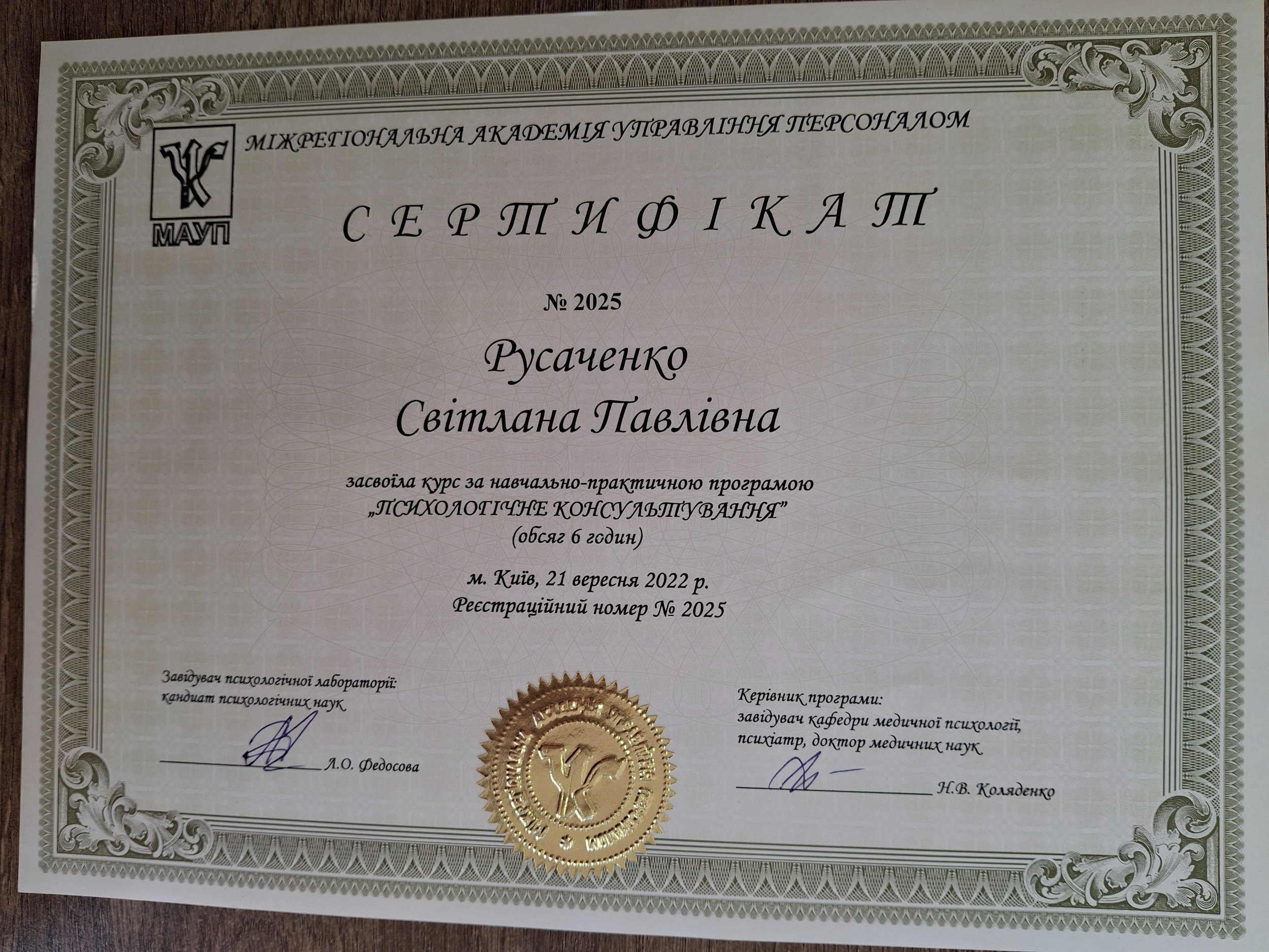 МАУП, психолог (Міжрегіональна академія управління персоналом)
