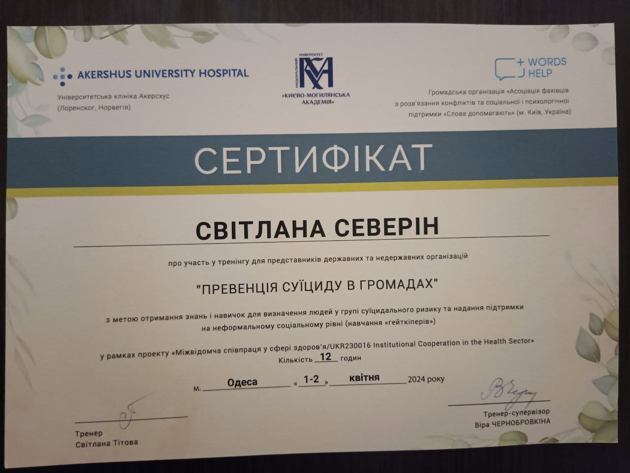-Тренінг "Превенція суїциду в громадах" 12 годин