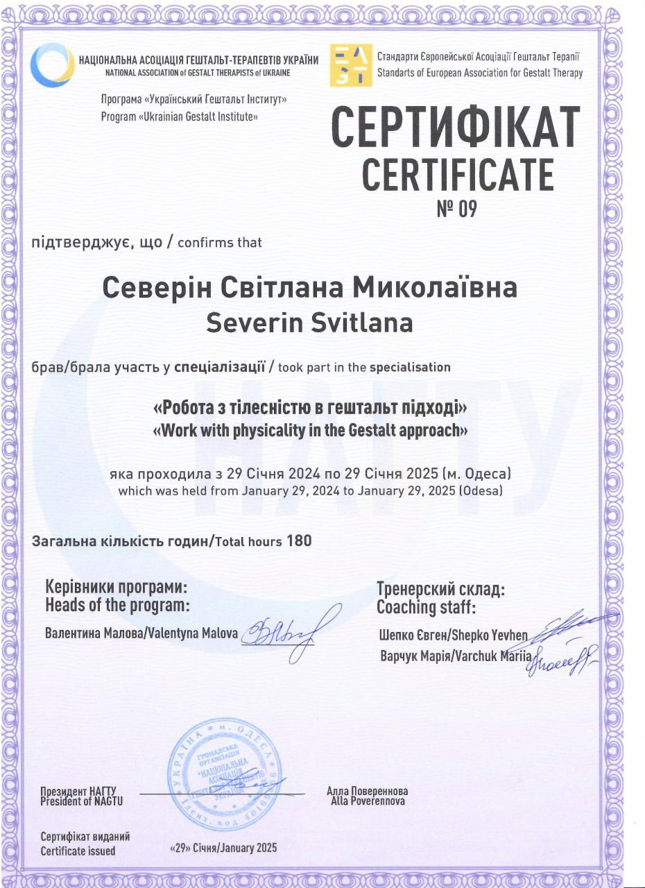 -НАГТУ, 2 ступінь гештальт терапевта, в процесі навчання