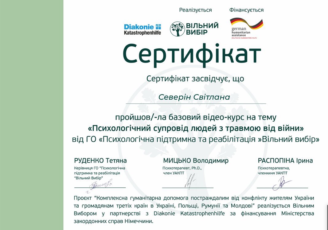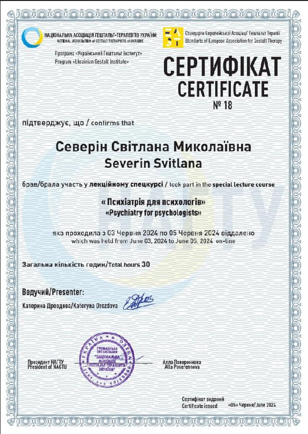 Вітаю, мене звуть Світлана. Я дипломований психолог, психотерапевт у навчанні.