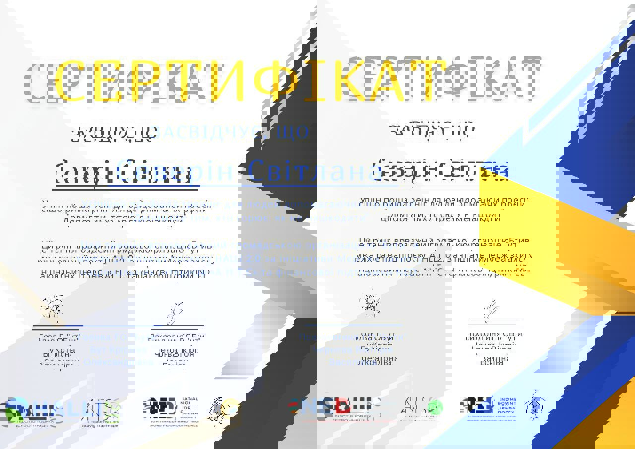 -Курс підготовки консультантів на Лінію психологічної підтримки ( Телефон Довіри) 48 теоретичних годин, 120 практичних