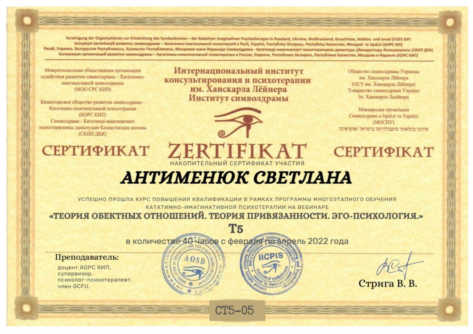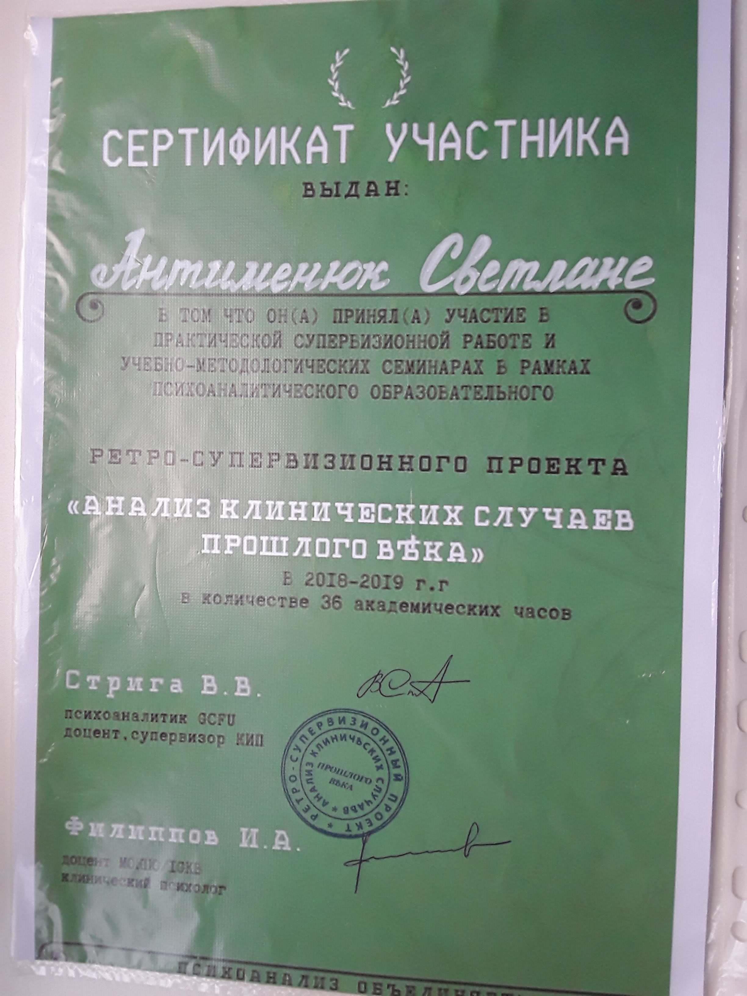 Міжнародне суспільство Кататимного переживання образів та імагінативних методів у психотерапії. Психоаналітичний освітній ретросупервізійний проект «Аналіз клінічних випадків минулого віку».