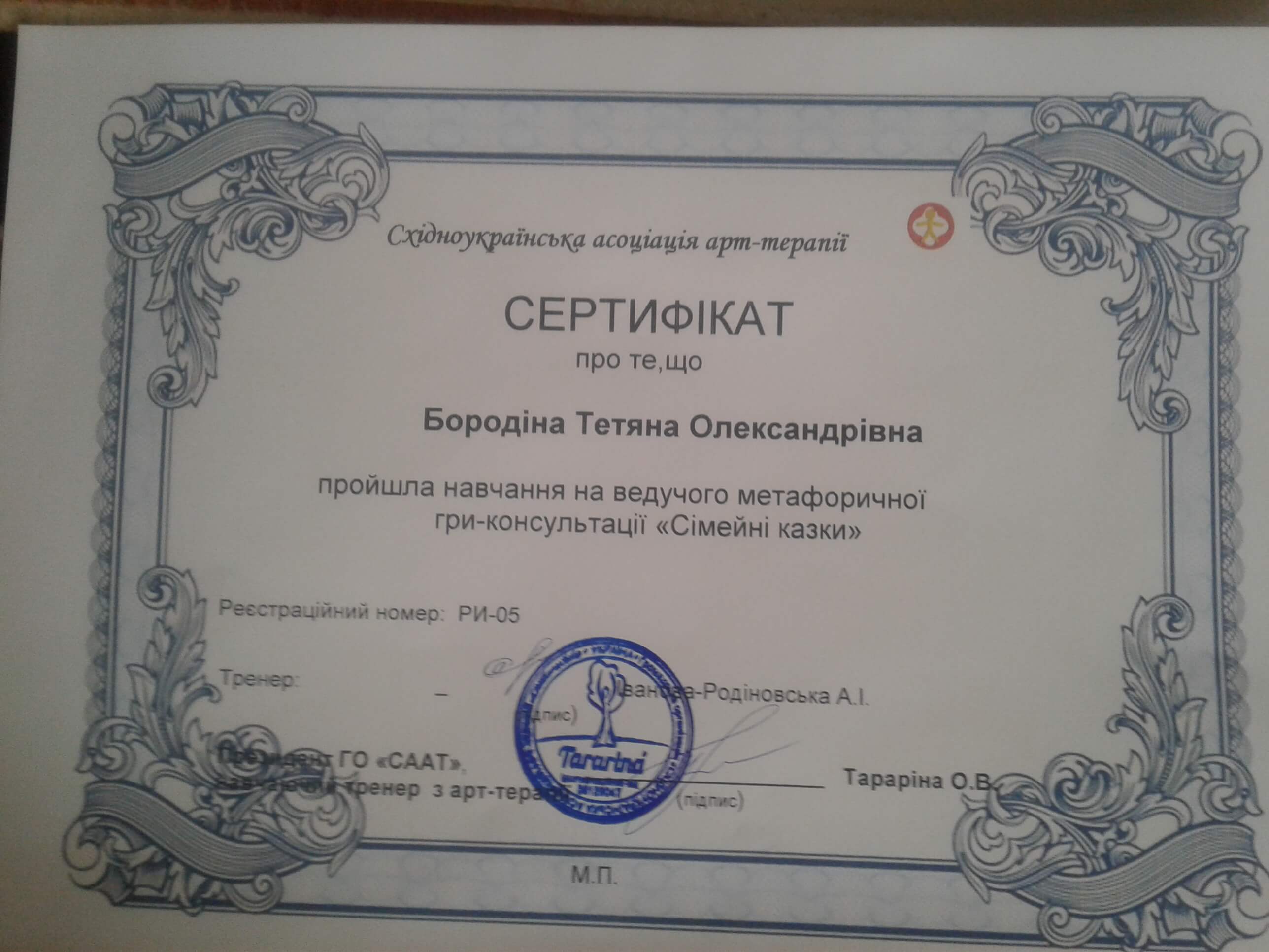 Сертифікати: