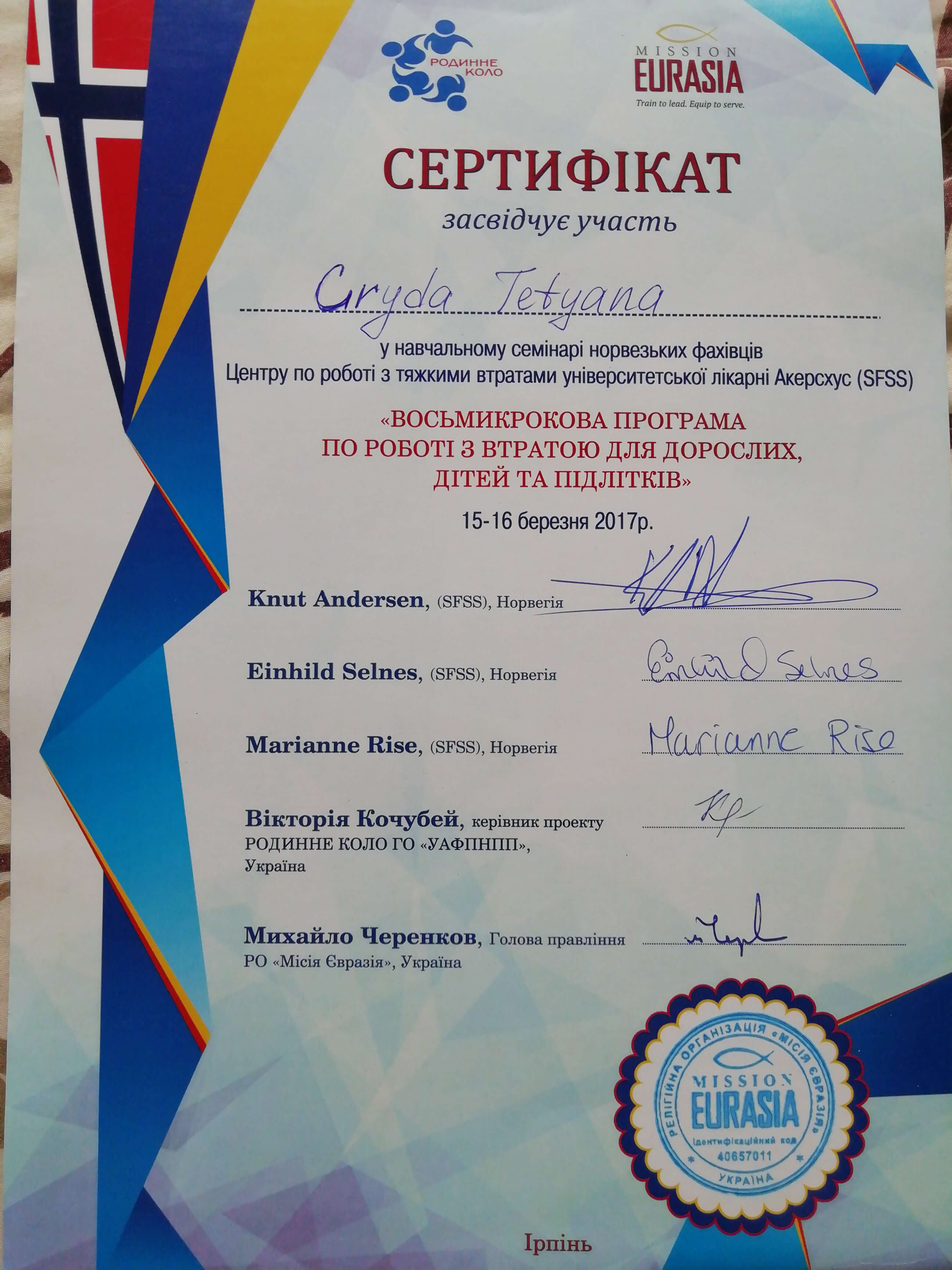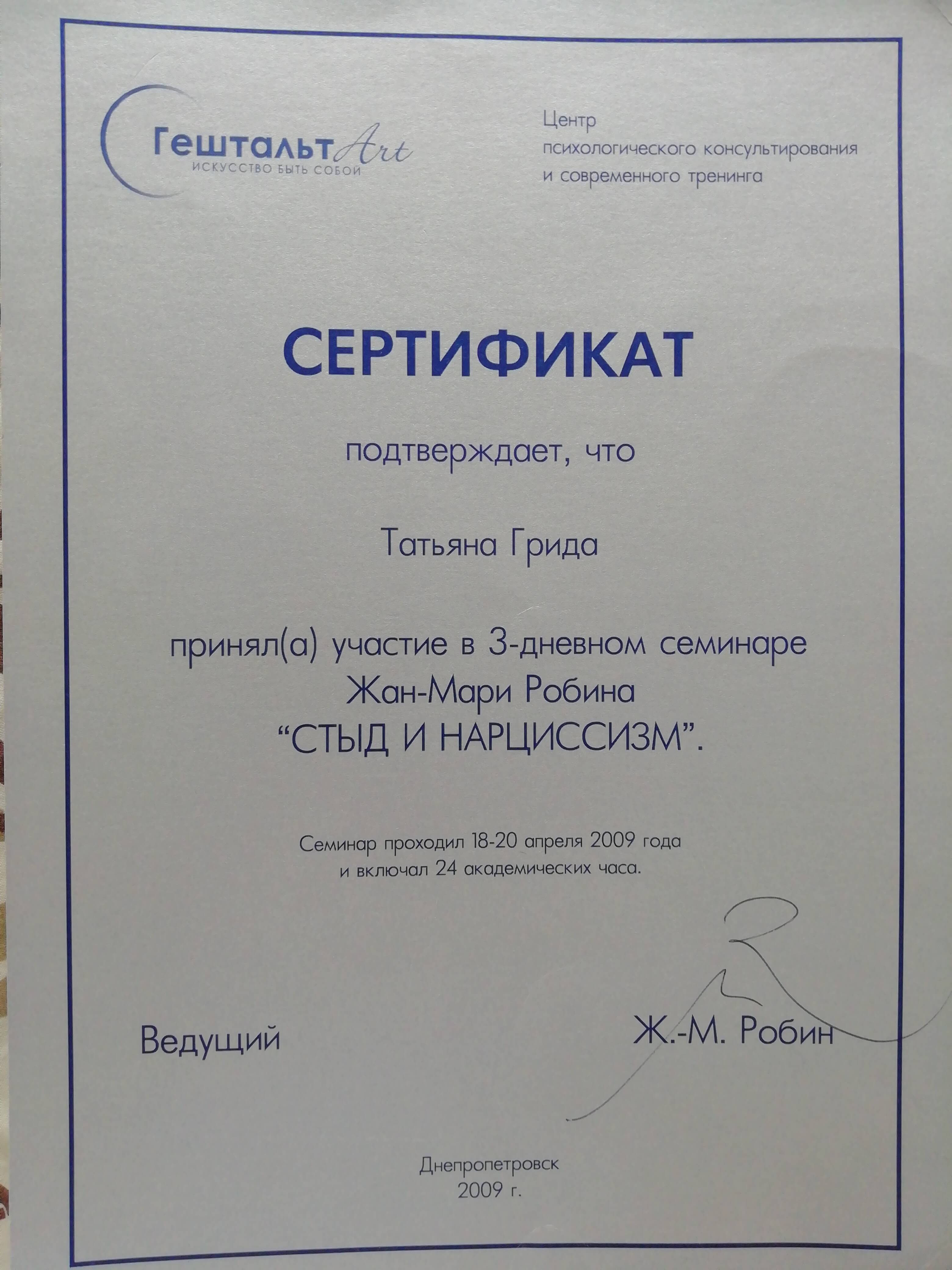 Тілесно орієнтований підхід, сімейні розстановки, психодинамічний підхід у корекції дитячо-батьківських відносин, базовий рівень у бодинамічному підході, спеціалізація з відносин у гештальтному підході, спеціалізація з ведення груп у гештальтному підході