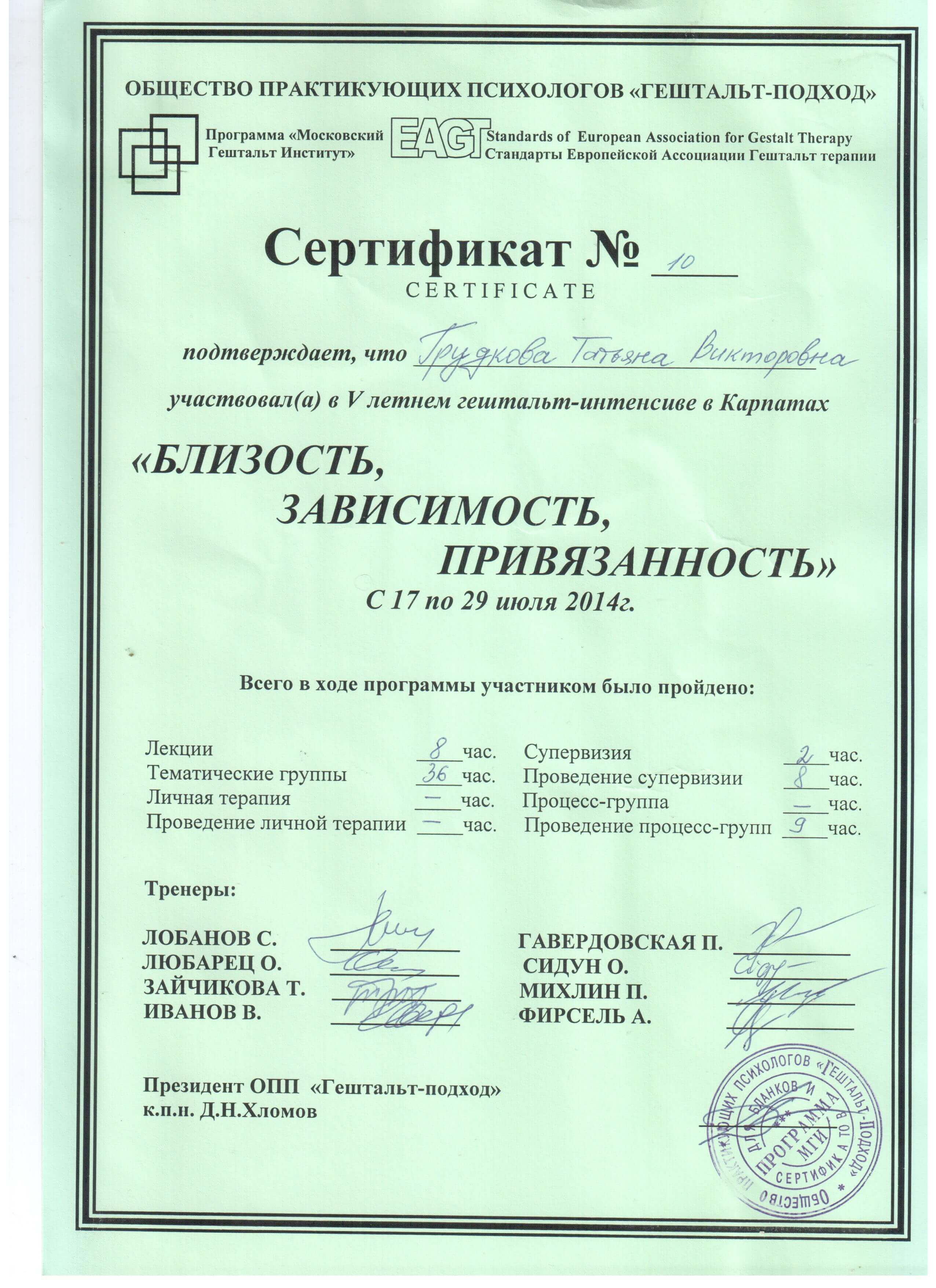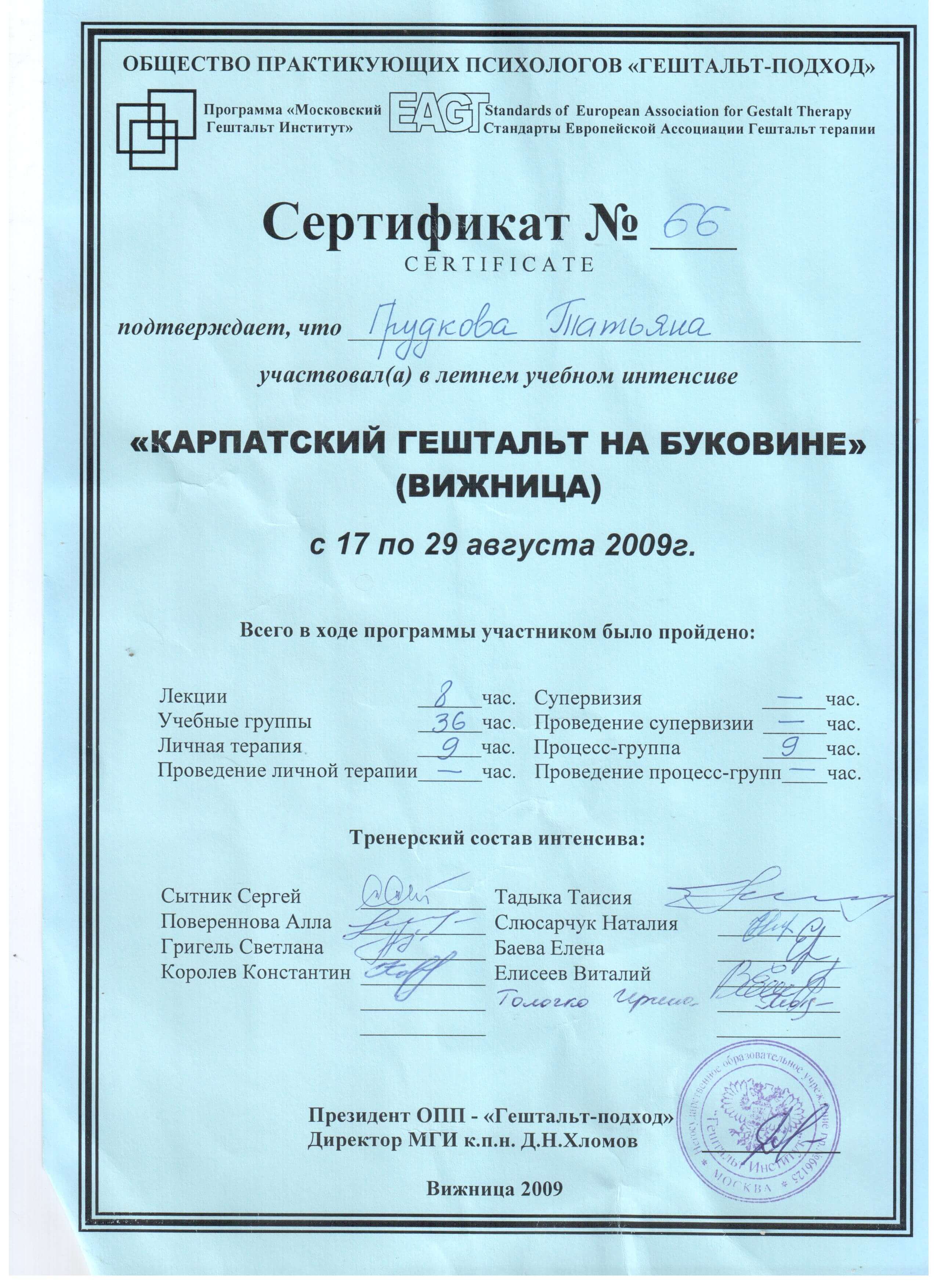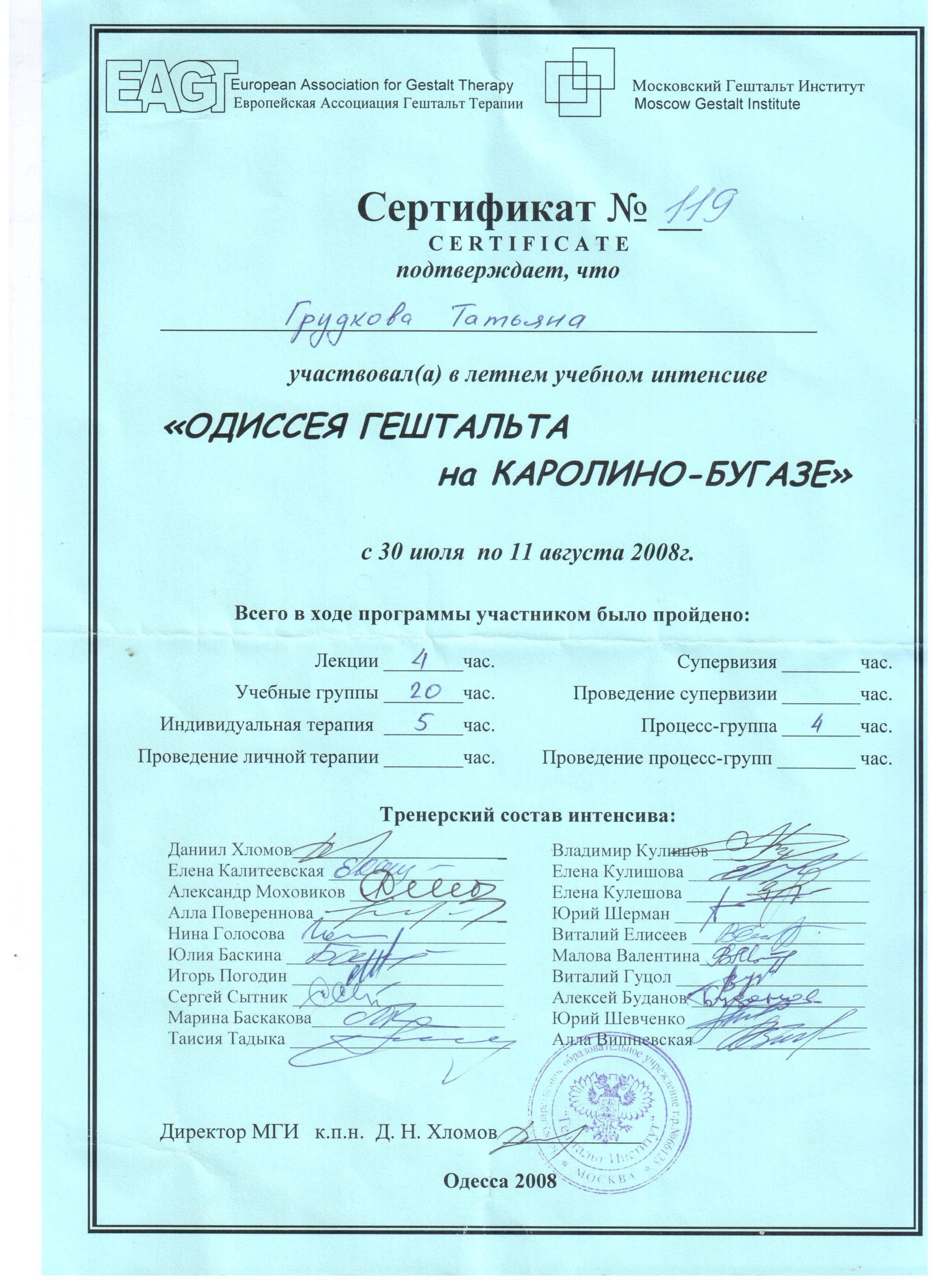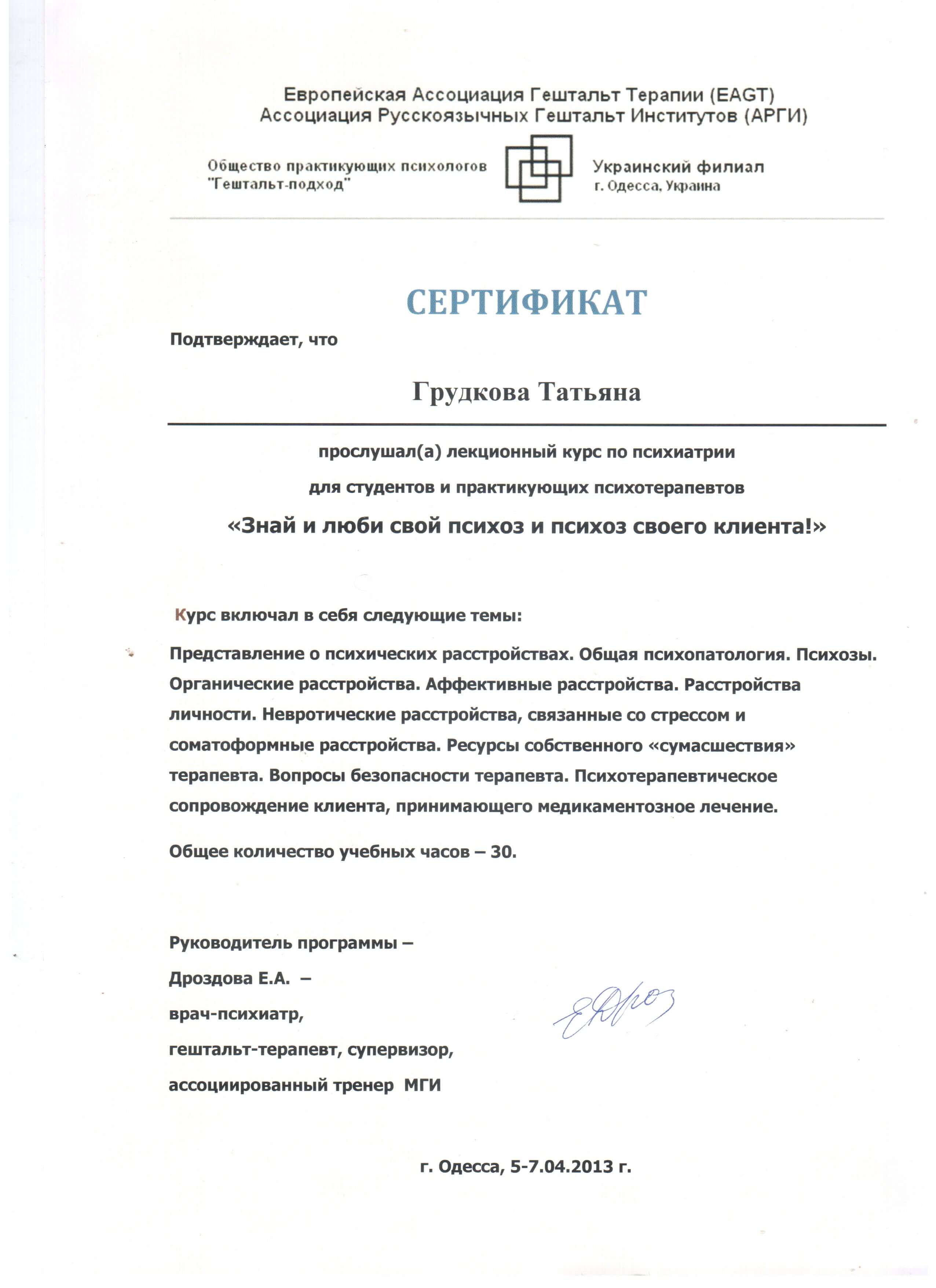 Одеський Національний університет імені Мечникова, друга вища психологія, Гештальт, МДІ 1 , 2 ступінь.