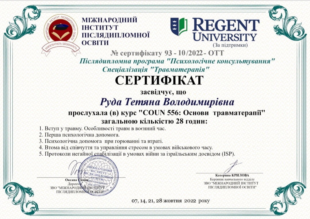 *Київський інститут "Я". Травмотерапія