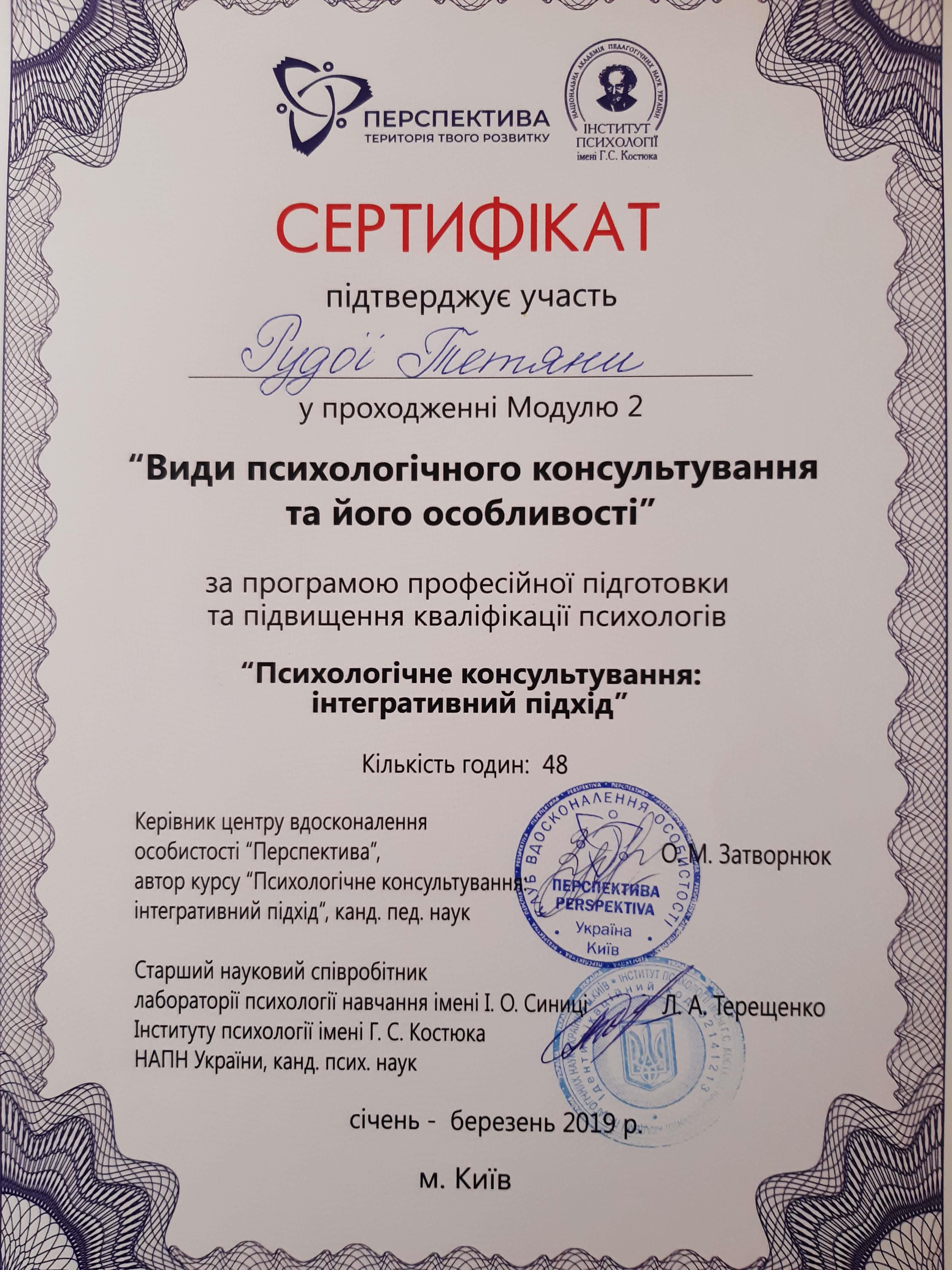 *Курси підвищення кваліфікації психологів "Перспектива". Інтегративний підхід у консультування