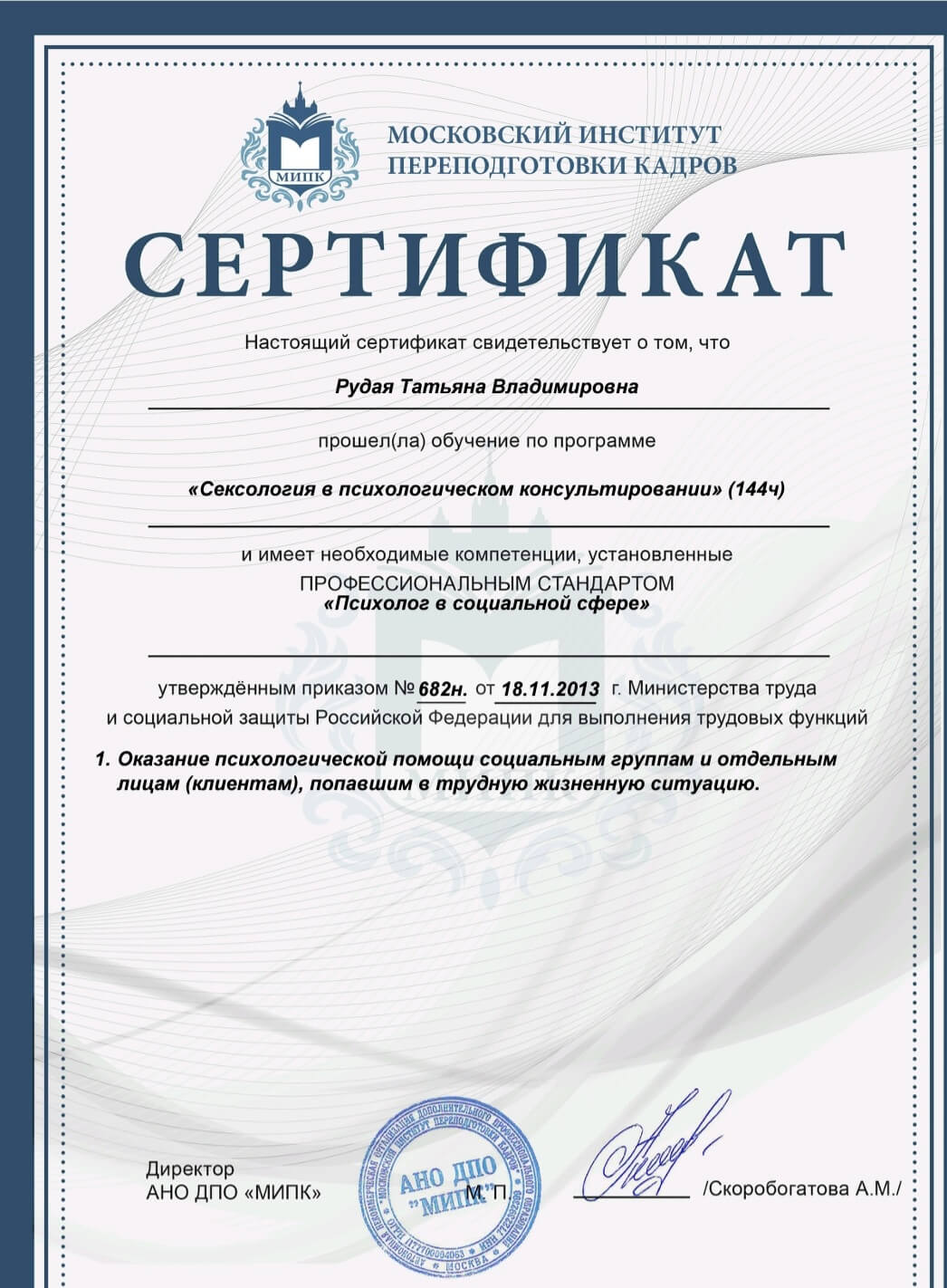 * Московський інститут перепідготовки кадрів, Сексологія