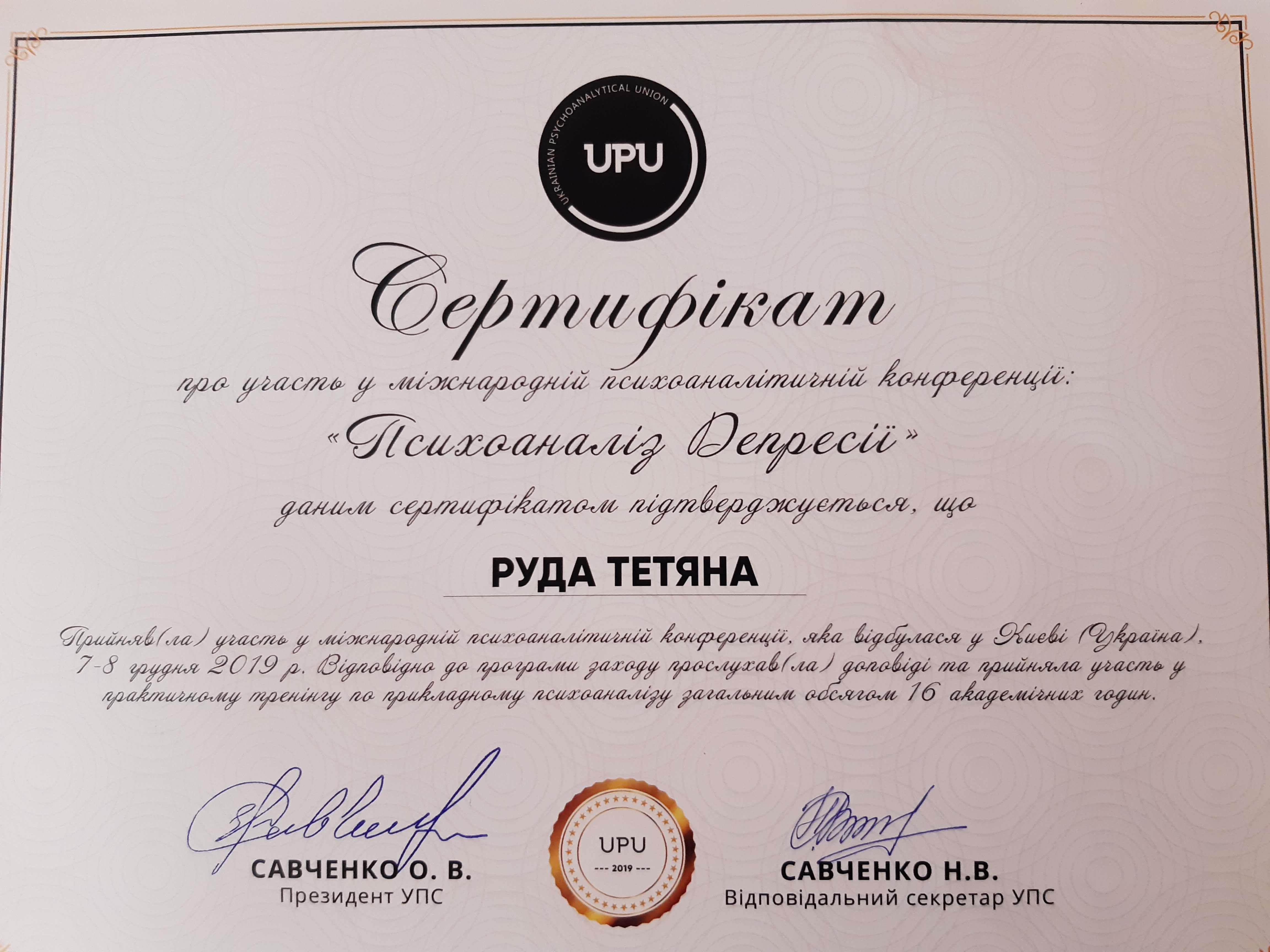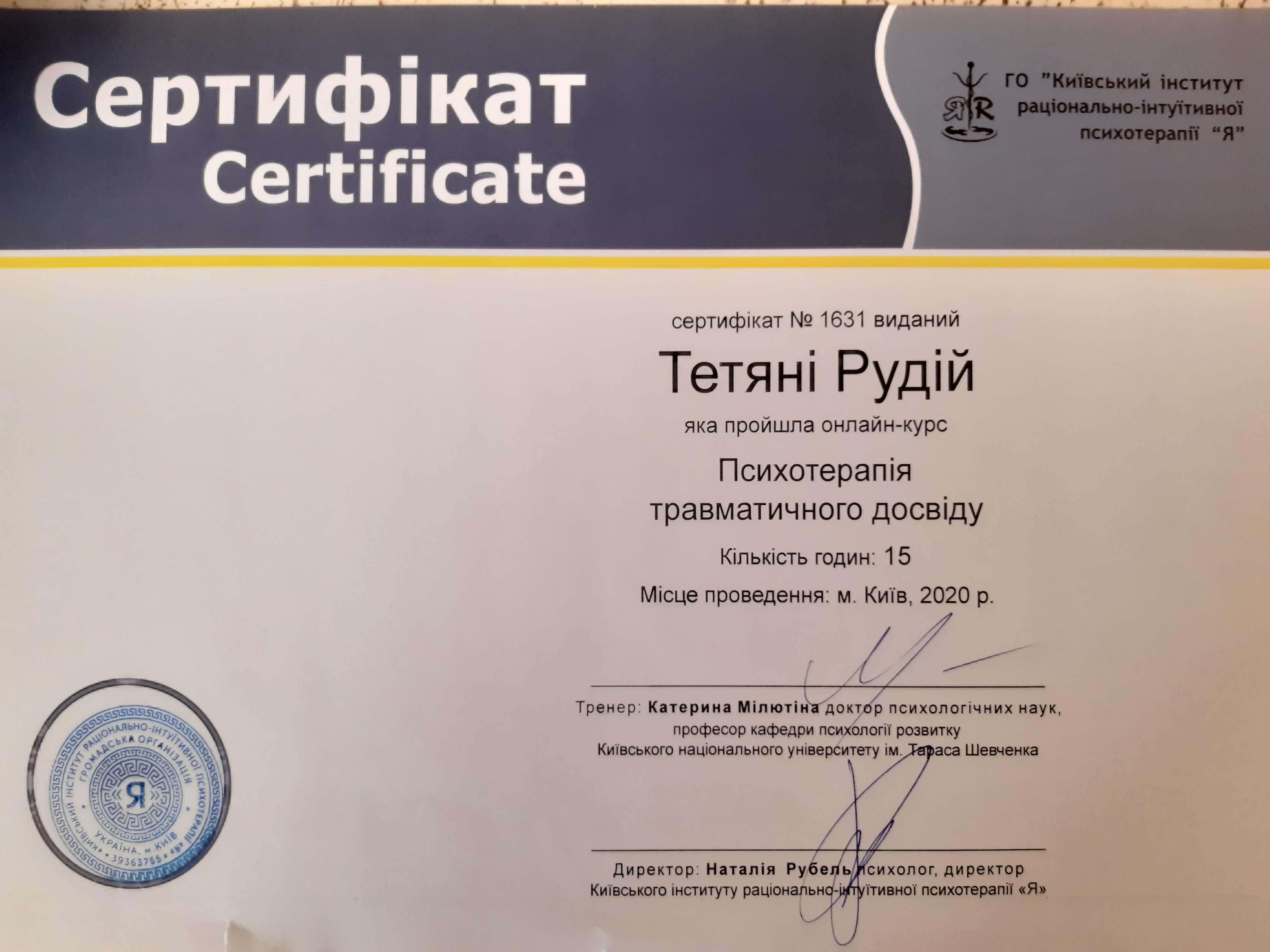 Сертифікати: