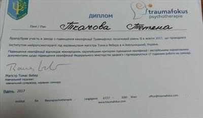 2017-2019 – "Травмофокусована терапія", інститут нейропсихотерапії під керівництвом Томаса Вебера;
