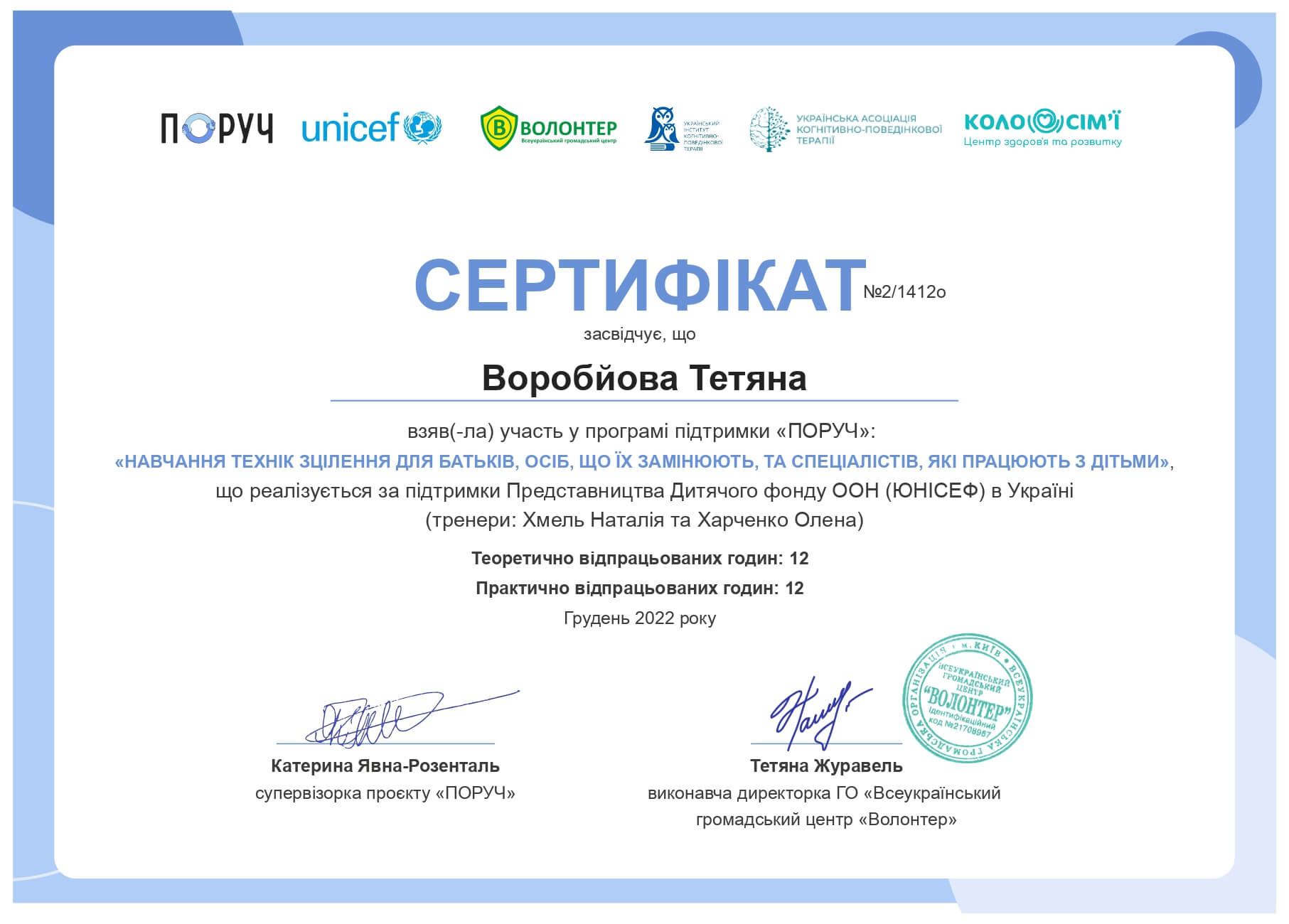 Програма підтримки «ПОРУЧ»: «НАВЧАННЯ ТЕХНІК ЗЦІЛЕННЯ ДЛЯ БАТЬКІВ, ОСІБ, ЩО ЇХ ЗАМІНЮЮТЬ, ТА СПЕЦІАЛІСТІВ, ЯКІ РАБОТАЮТЬ З ДІТЬМИ» (за підтримки представництва дитячого фонду ООН (ЮНІС)