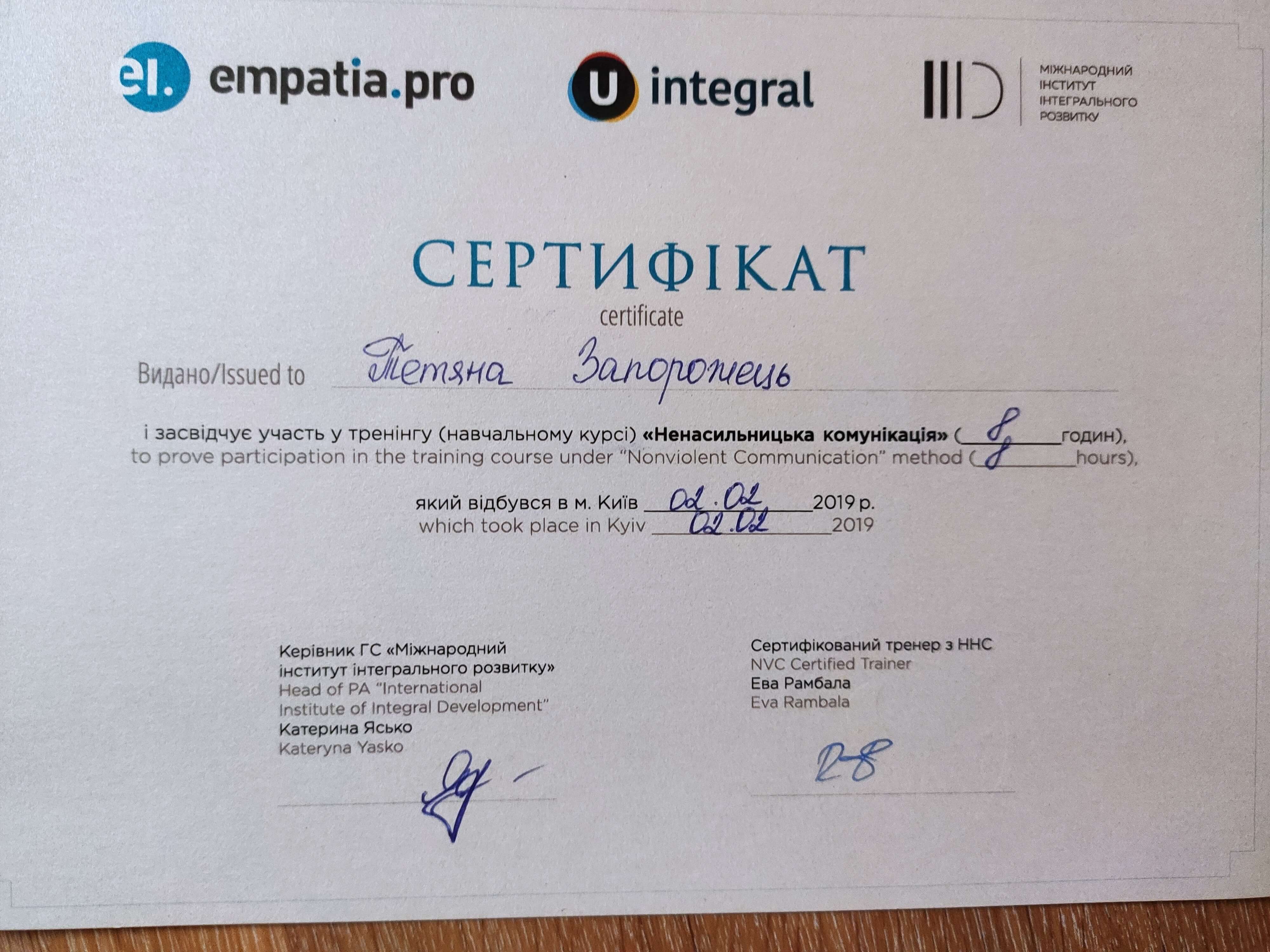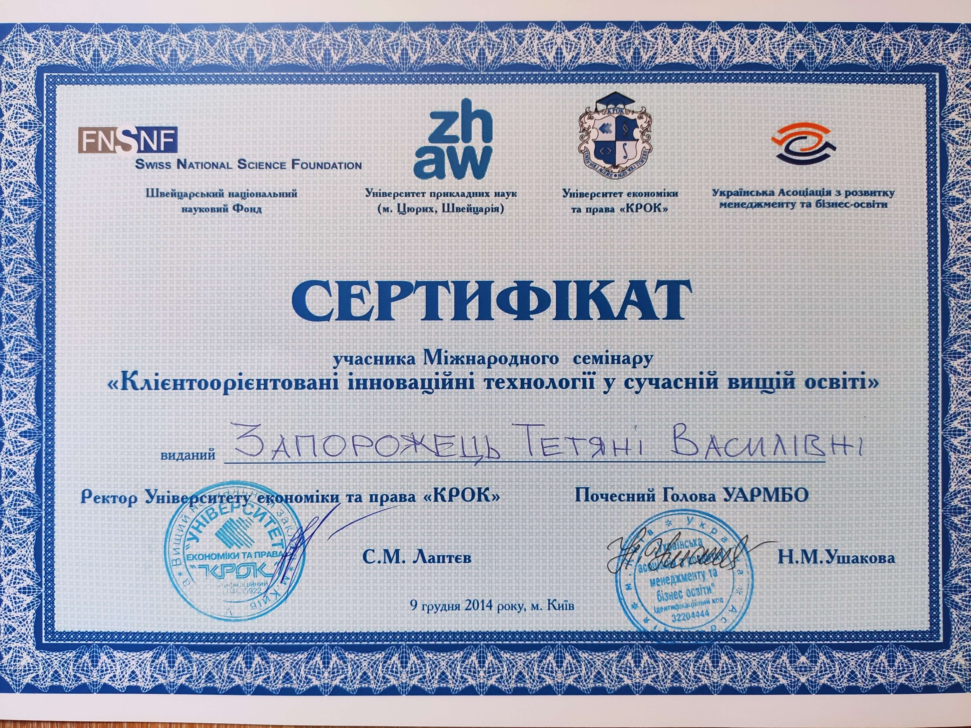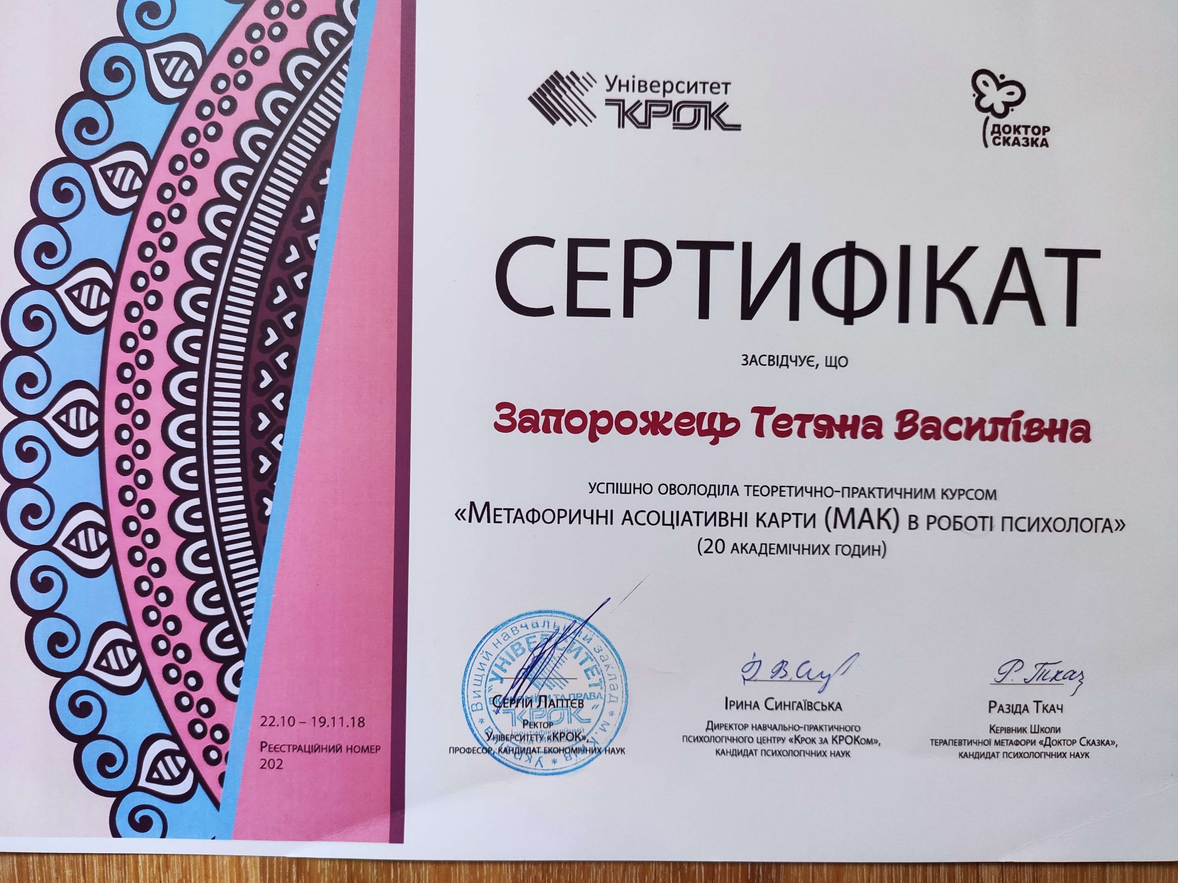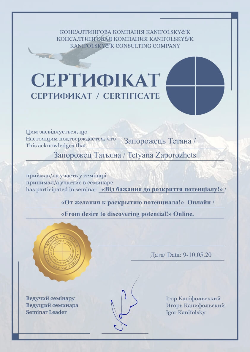Сертифікати: