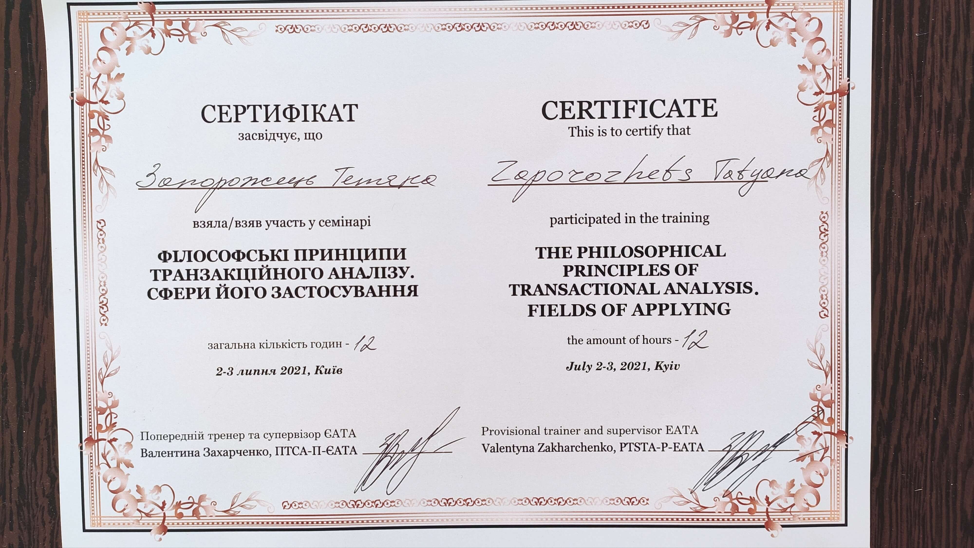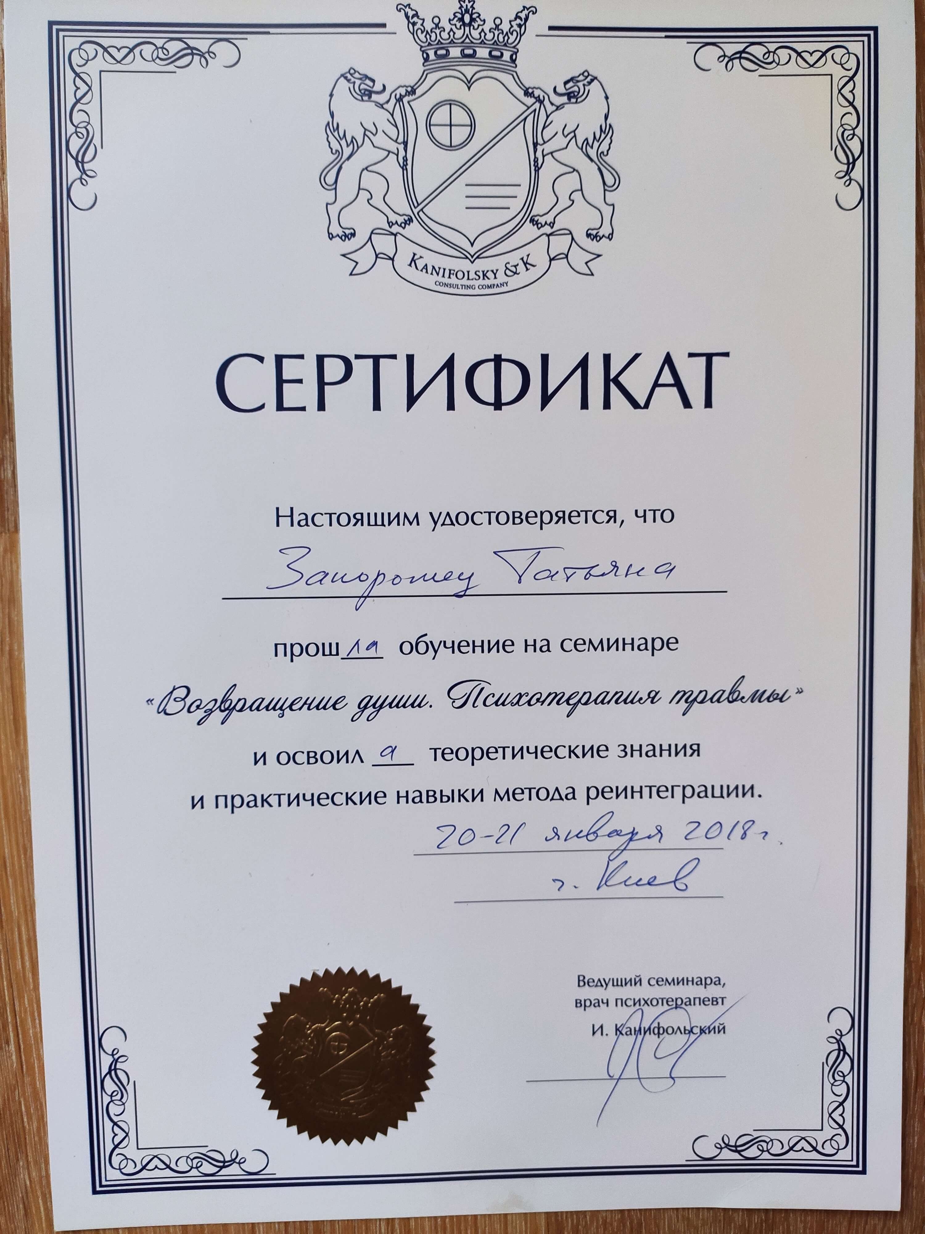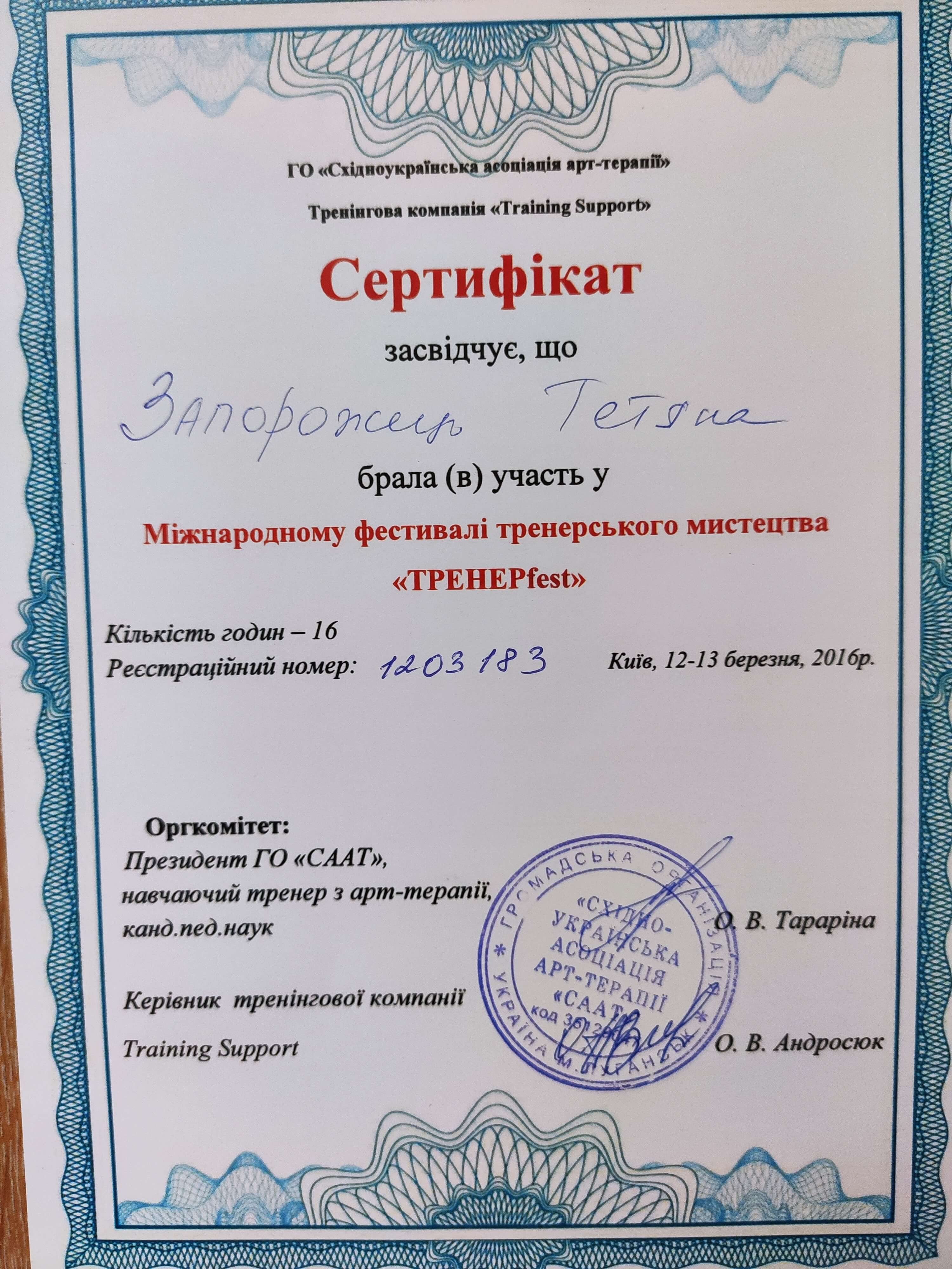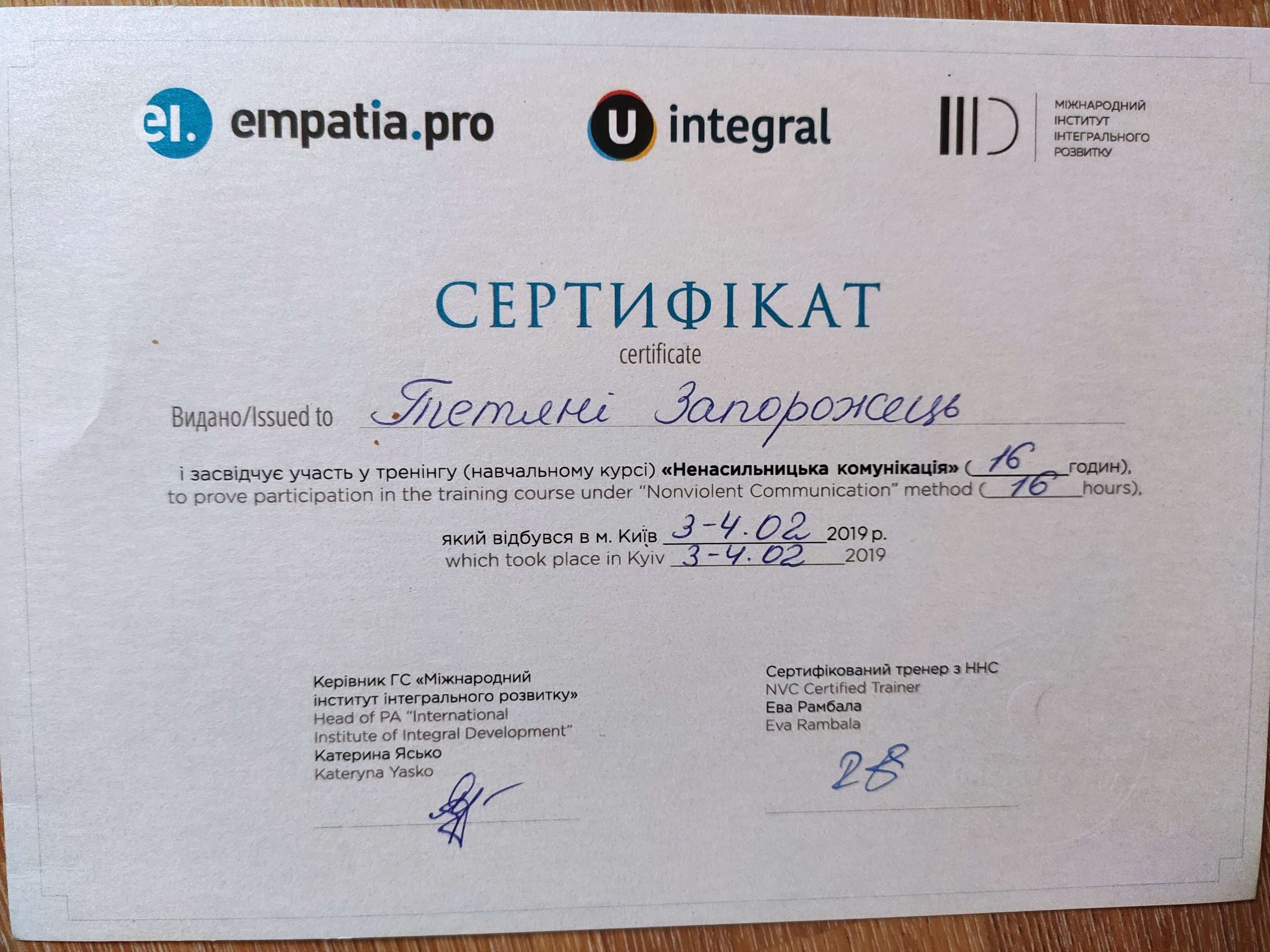 Сертифікати: