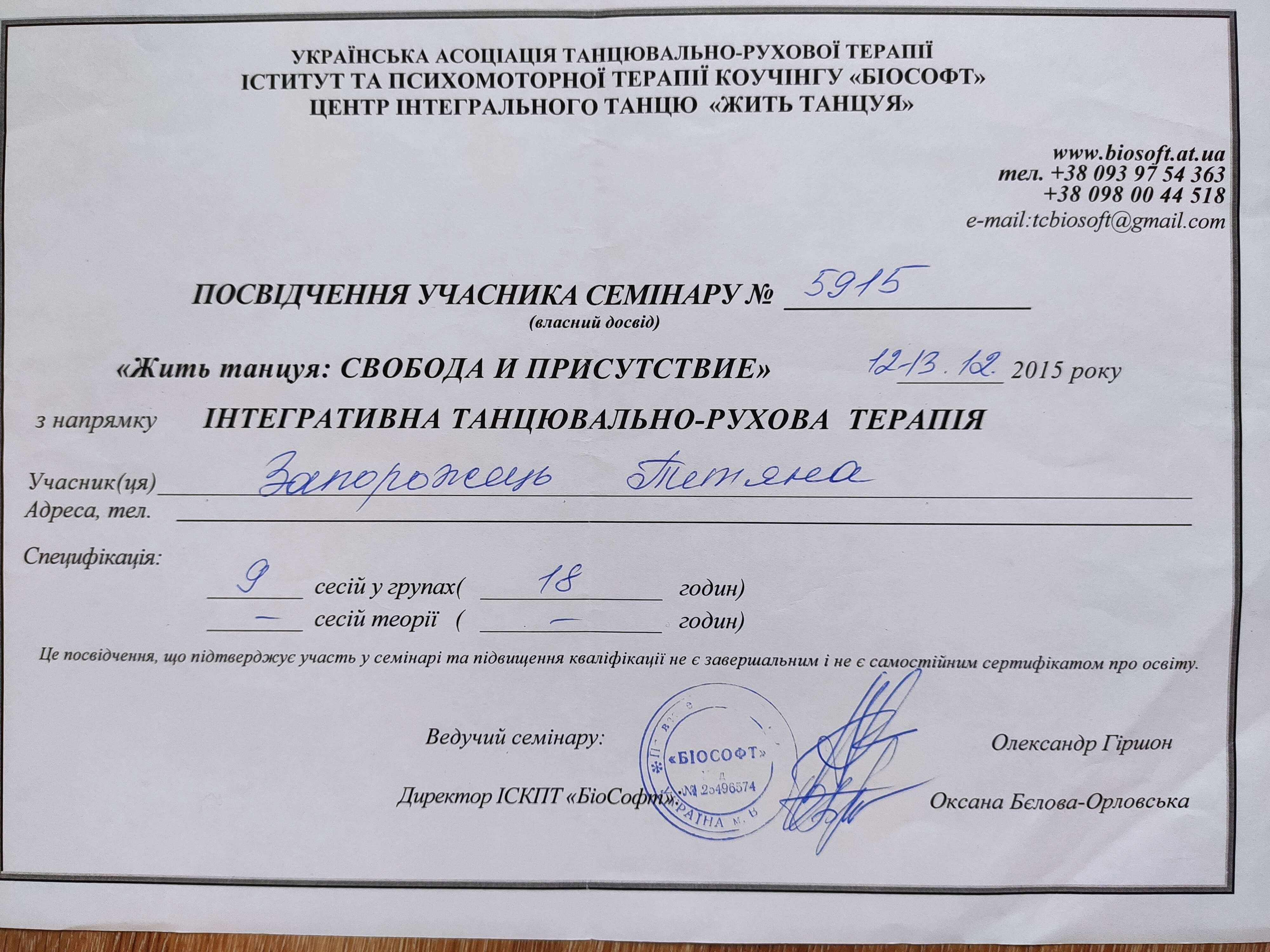 Магістратура Психологія, Університет "КРОК", кандидат наук, навчання транзактного аналізу, танцювально-рухова терапія у Олександр Гіршон