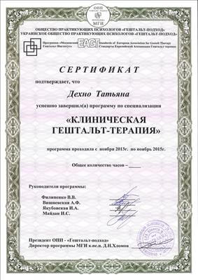 Московський Гештальт Інститут. Кваліфікація – гештальт терапевт (відповідність стандартам Європейської Асоціації Гештальт терапії ЄАGT)