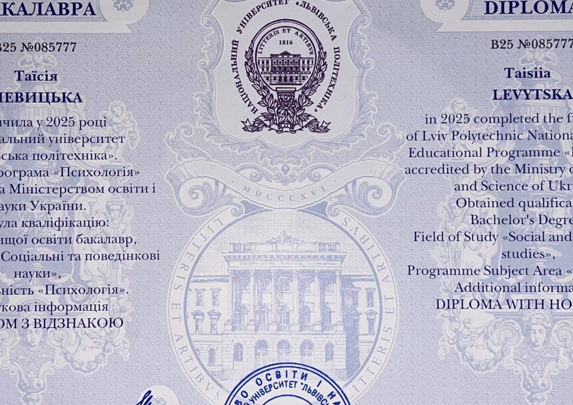Цього літа я отримала диплом бакалавра психології з відзнакою, а зараз проходжу магістратуру за програмою подвійного диплому: цьогоріч навчаюся в Україні, наступного - в Ноттінгемському університеті. Паралельно я регулярно підвищую кваліфікацію: курси з роботи з травмою, клінічні модулі, учать у симпозіумах, міжнародних обмінам YouthPass та інші професійні програми. Навчання для мене - постійний процес, який рухається разом із моєю практикою.