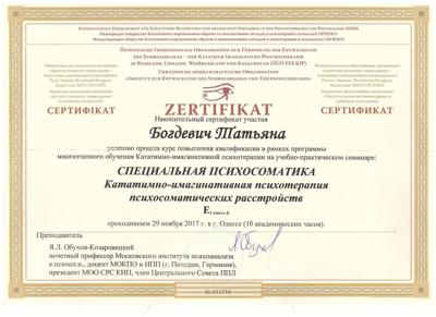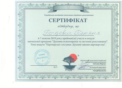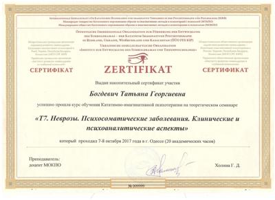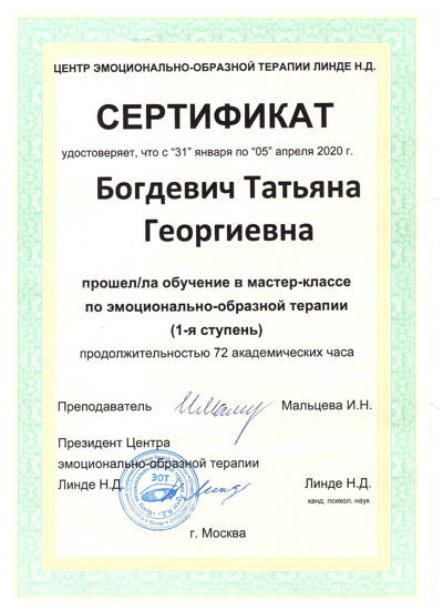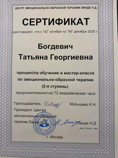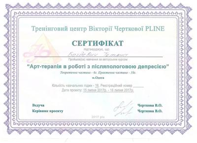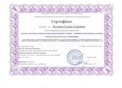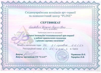 Відповідально ставлюся до власної особистої терапії, постійно підвищую свій професійний рівень: конференції, професійні курси, лекції тощо. - люблю свою роботу.