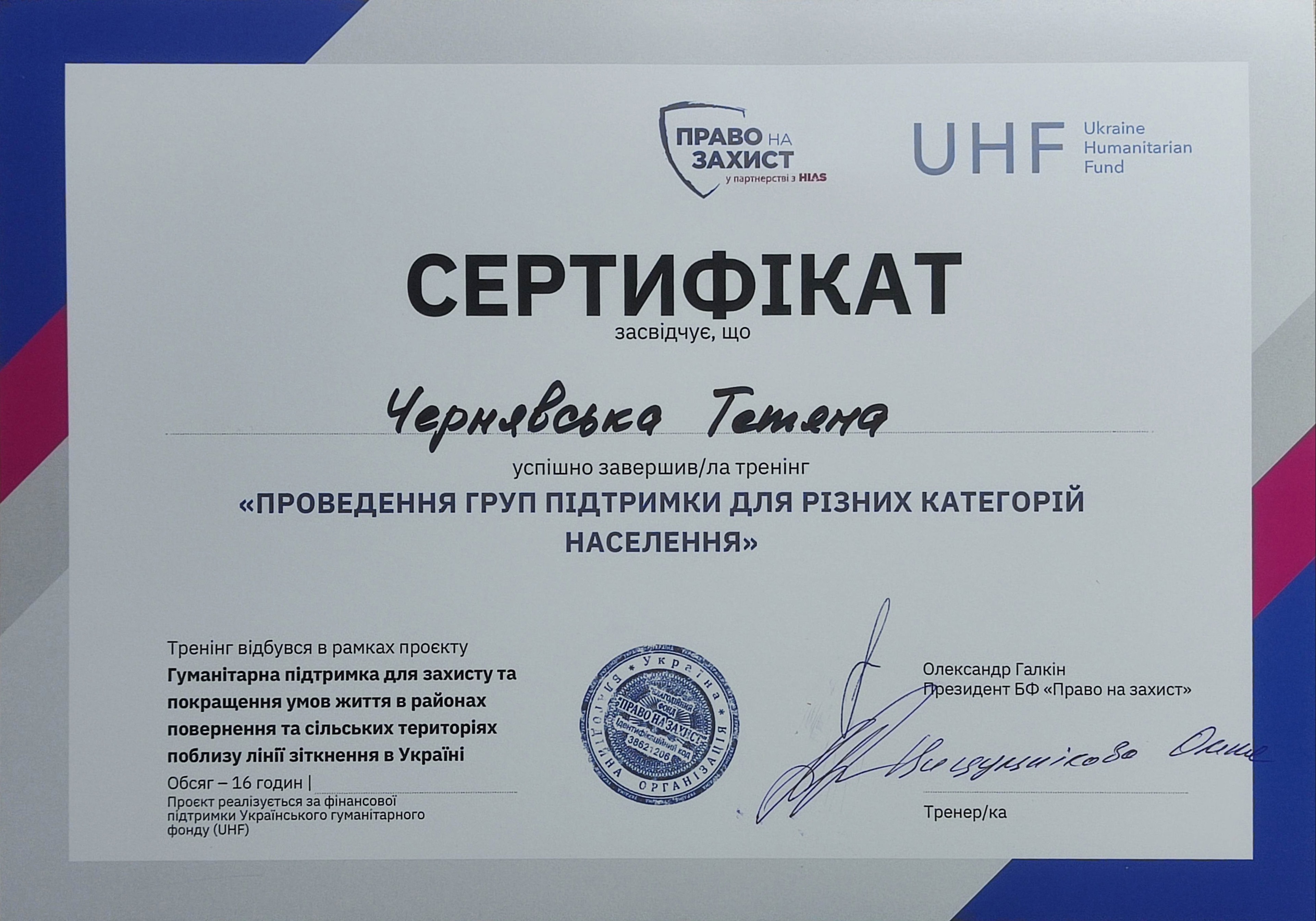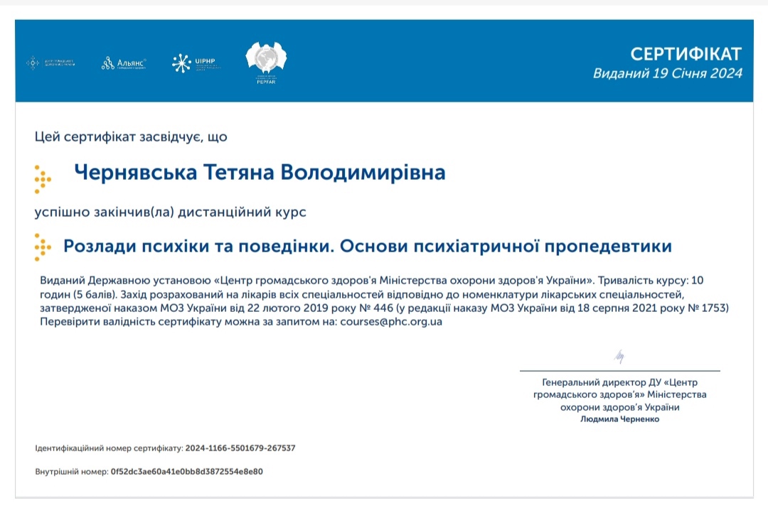 Сертифікати: