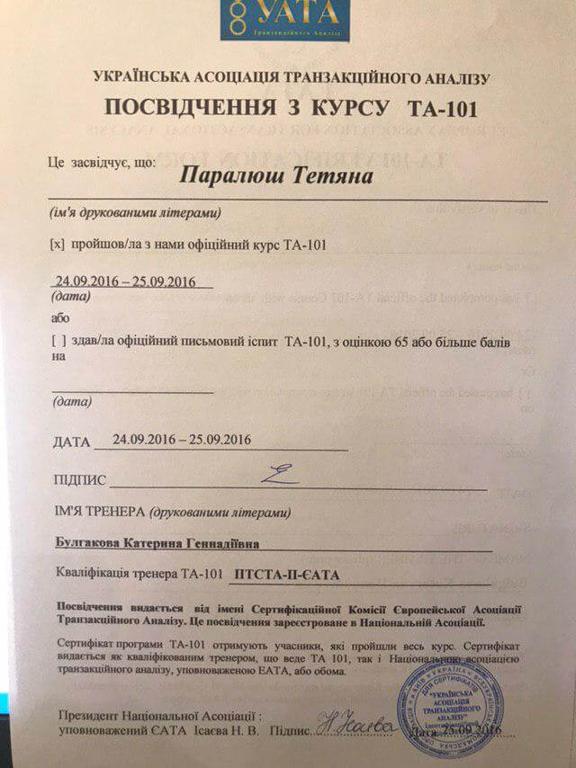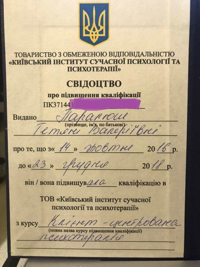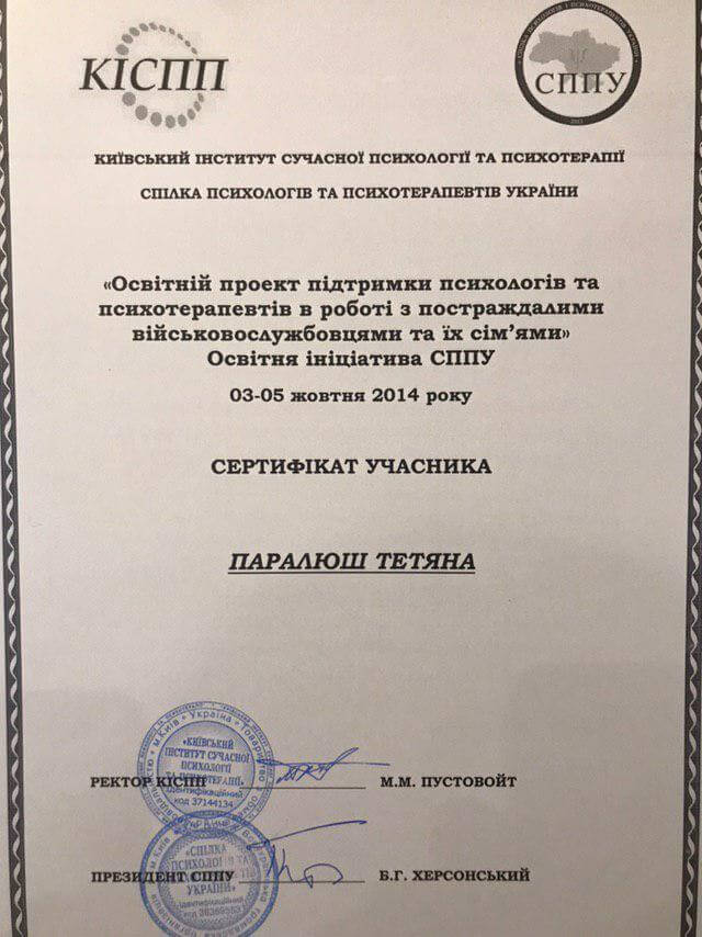 Київський інститут сучасної психології та психотерапії. Підвищення кваліфікації у клієнт-центрованому напрямі психотерапії. Травматерапія шляхом інтеграції травматичного досвіду.
