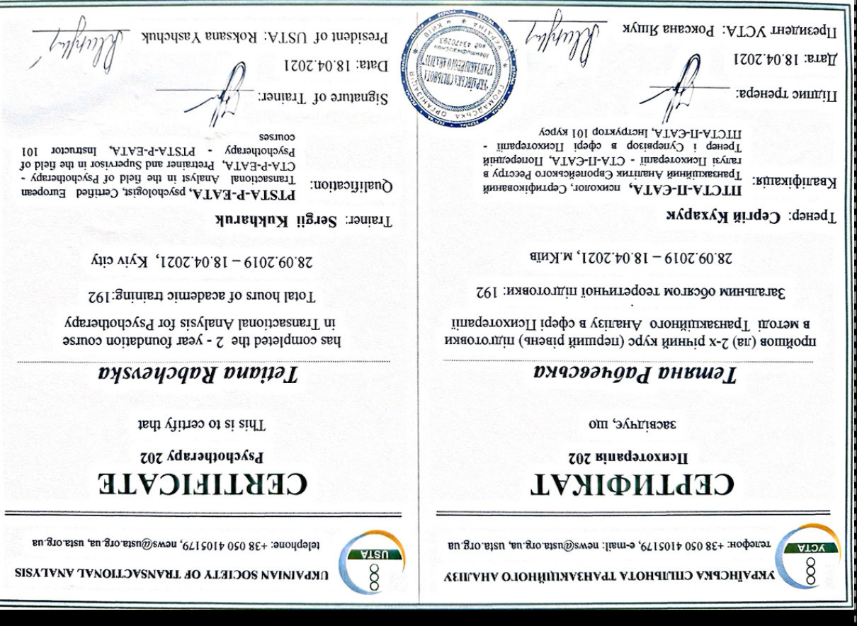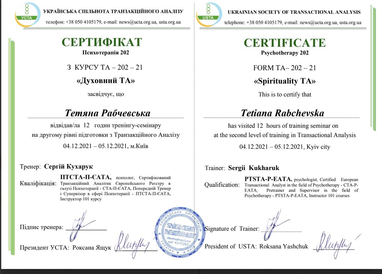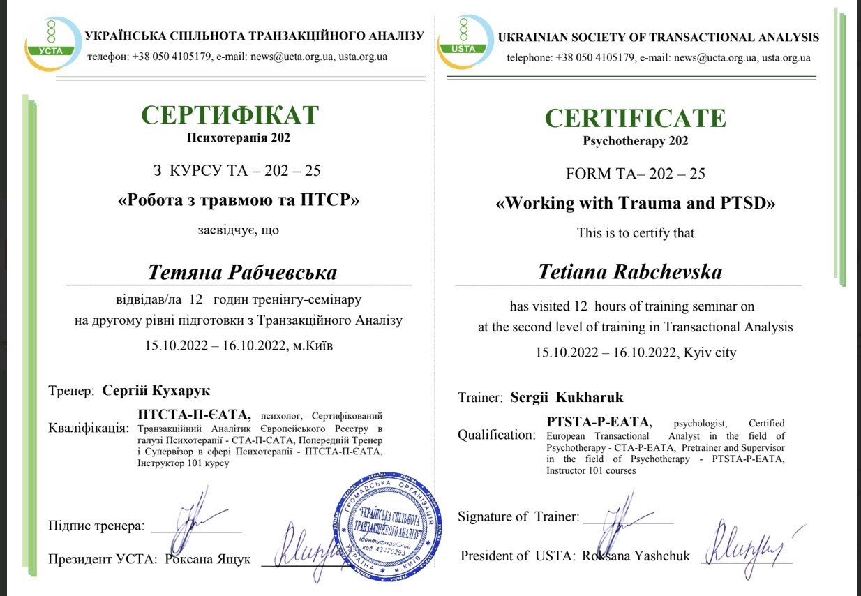 Проходила навчання в методі "Транзактний аналіз"