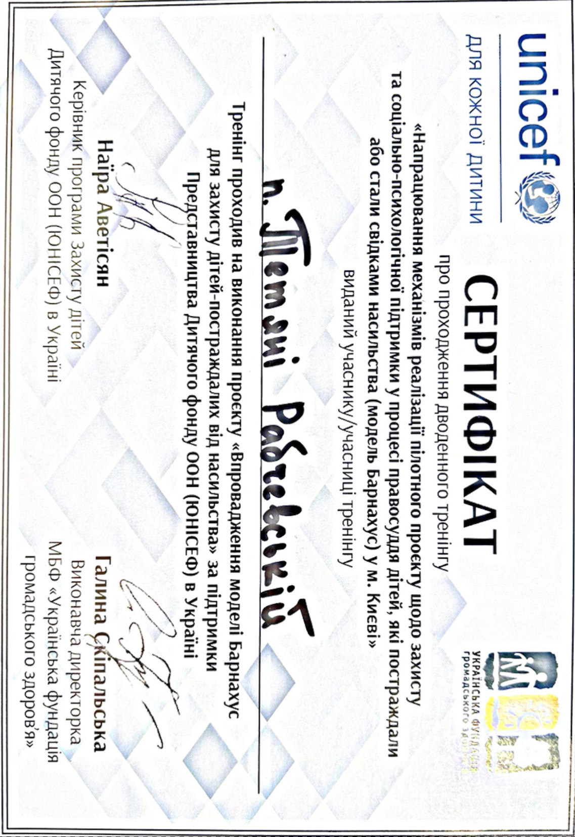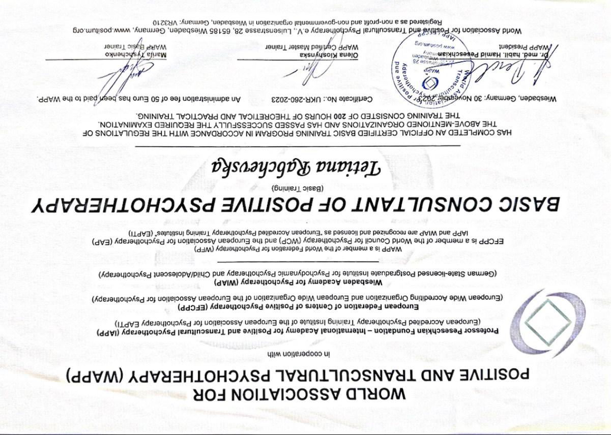Базовий курс з позитивної та транскультуральної психотерапії;