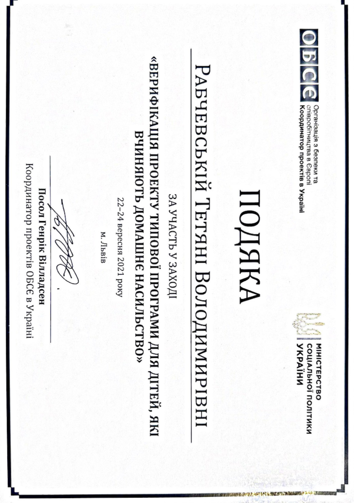 Верифікація проекту типової програми для дітей, які вчиняють домашнє насильство