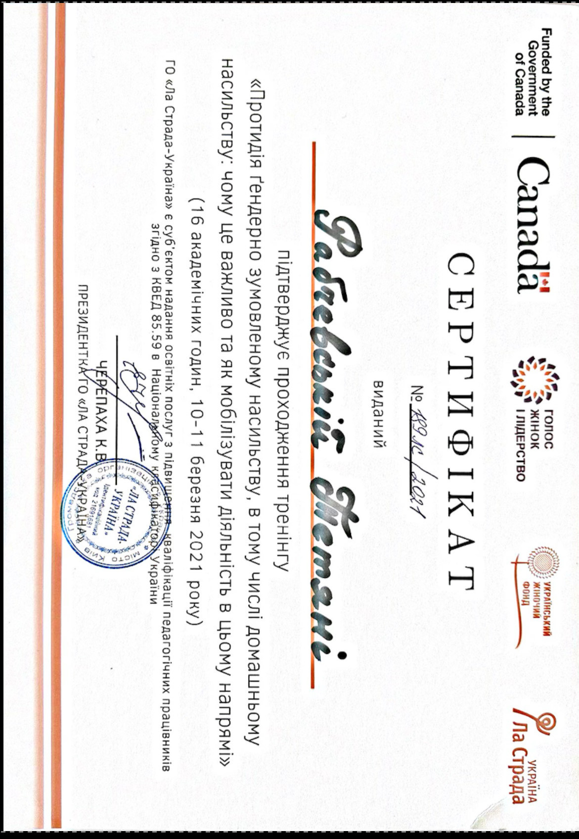 28.09.2019 - 18.04.2021, Кількість годин - 192