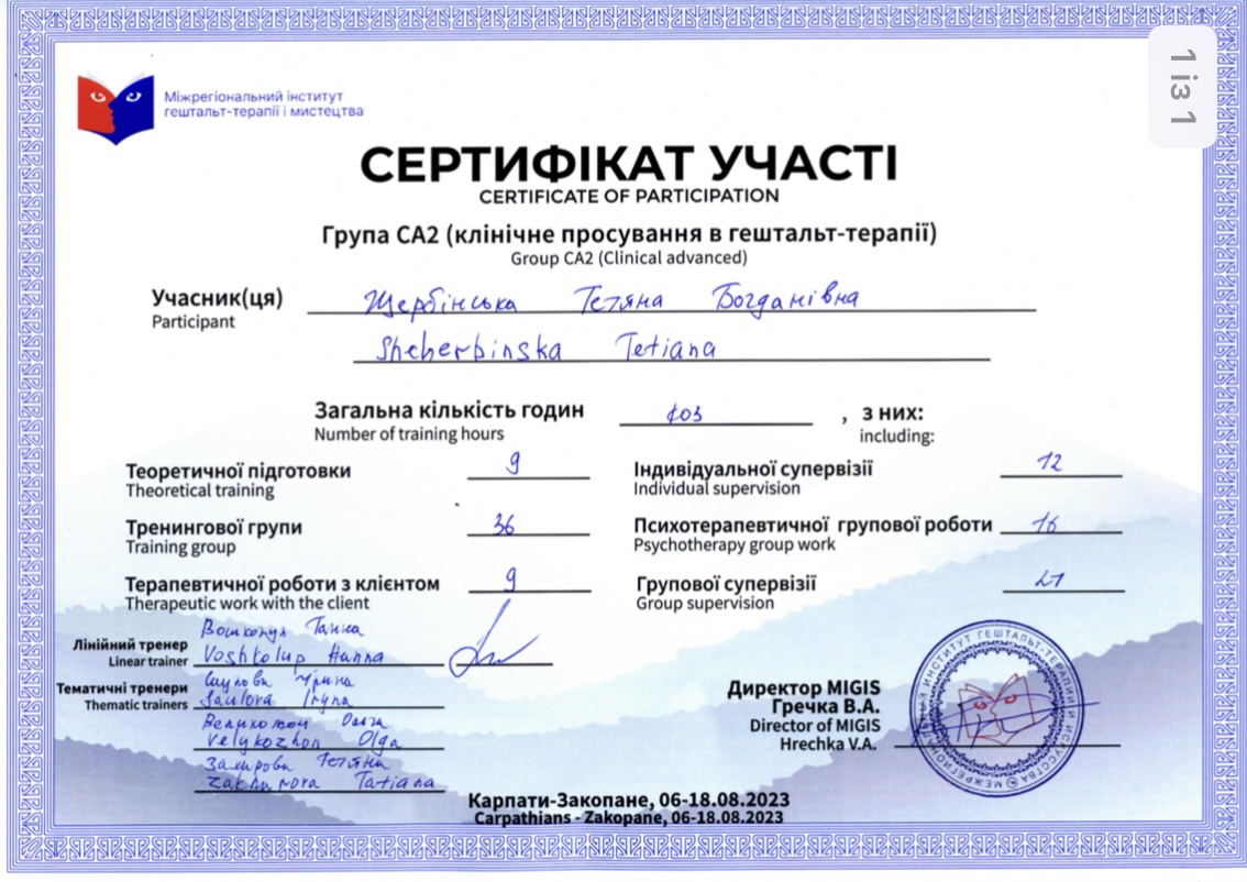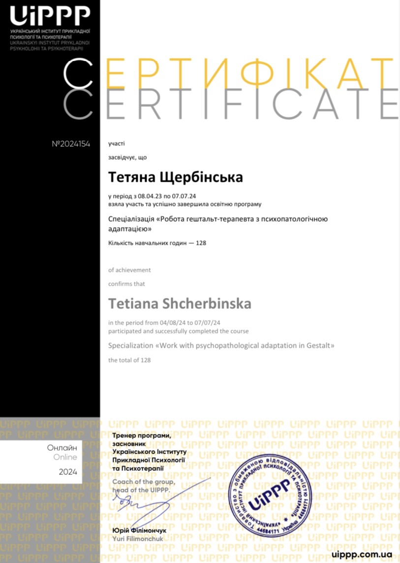 Спеціалізація «Робота гештальт-терапевта з психопатологічною адаптацією»