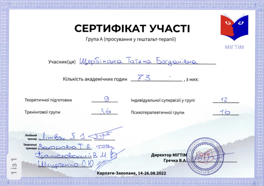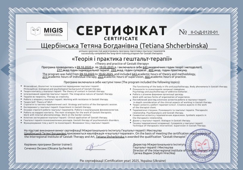 Завдяки навчанню на психотерапевта я навчилась розрізняти емоції, які формують внутрішню напругу. Дізналась яким чином їх проживати. А також здобула навички завдяки яким, можу відчувати себе добре