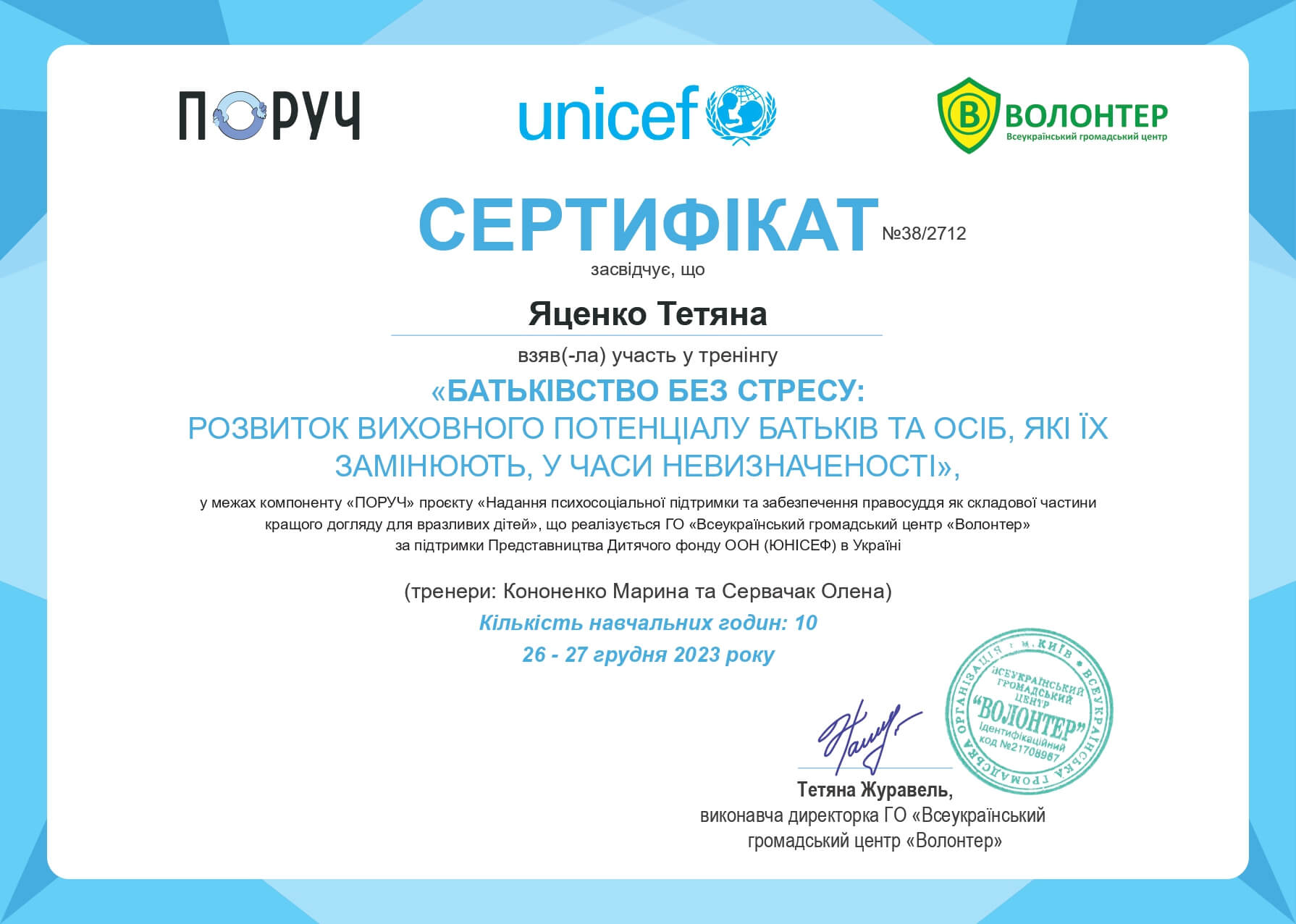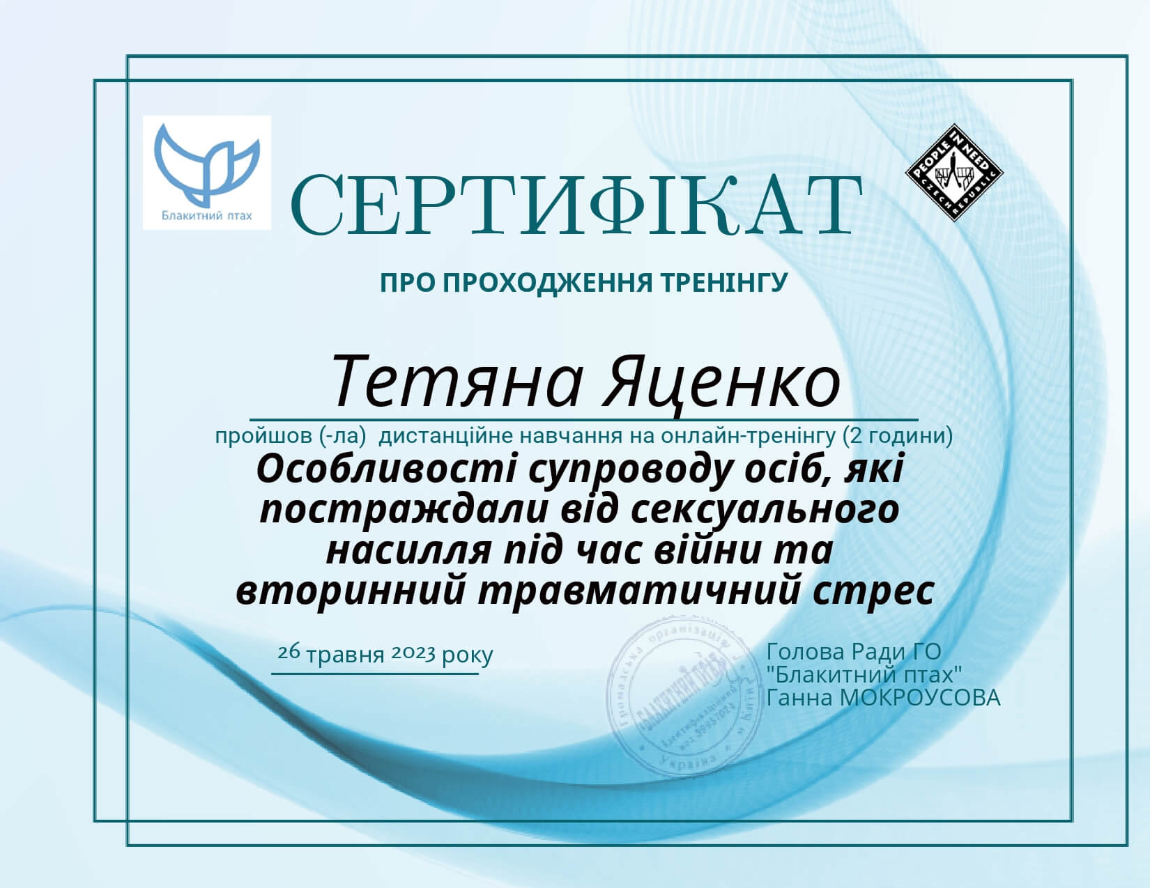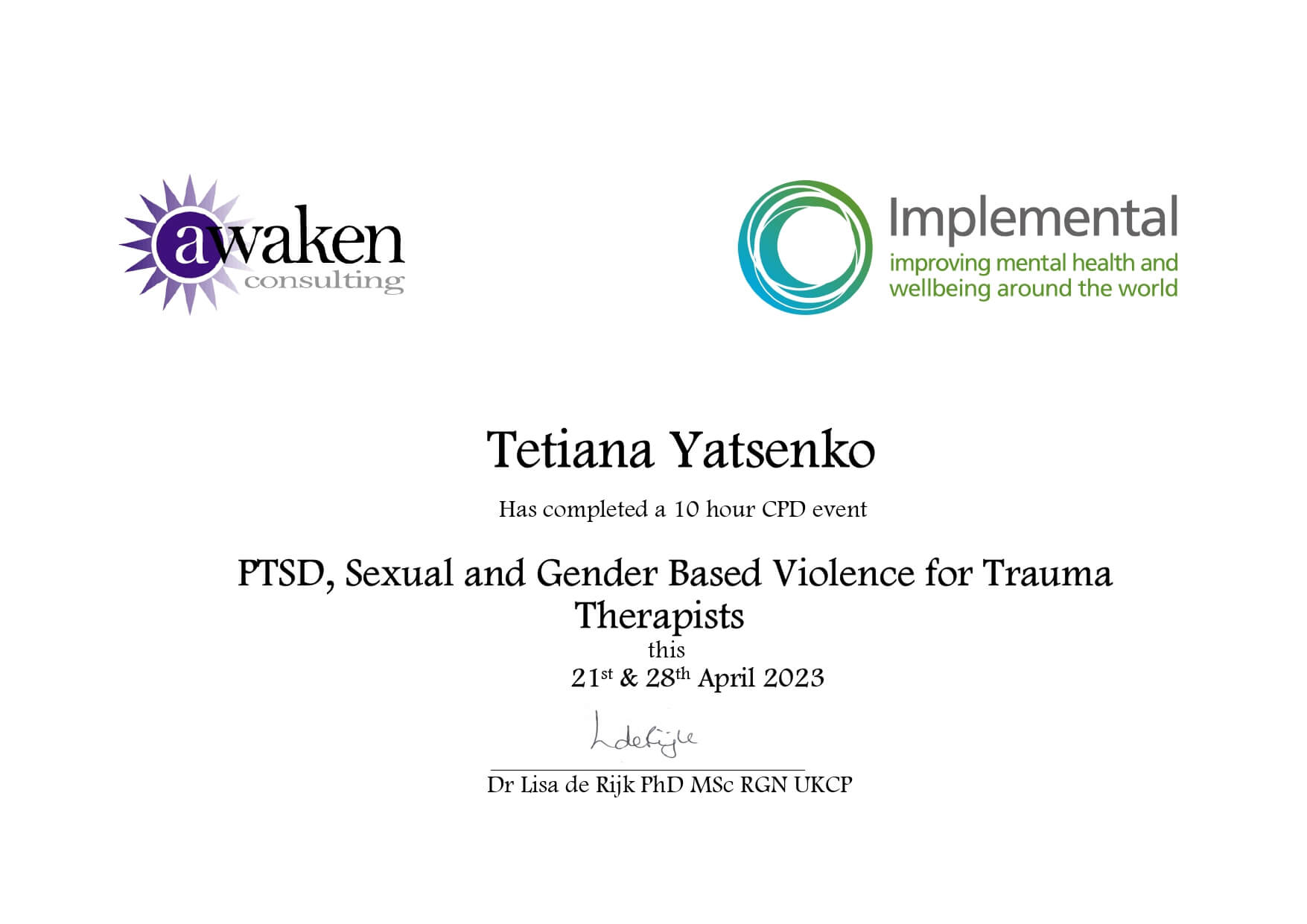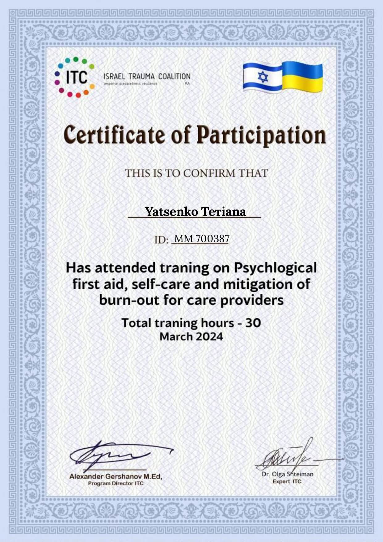 2022-2024 Навчання у Київському Міжнародному інституті післядипломної освіти за спеціалізацією "Клінична психологія та психотерапія травми"