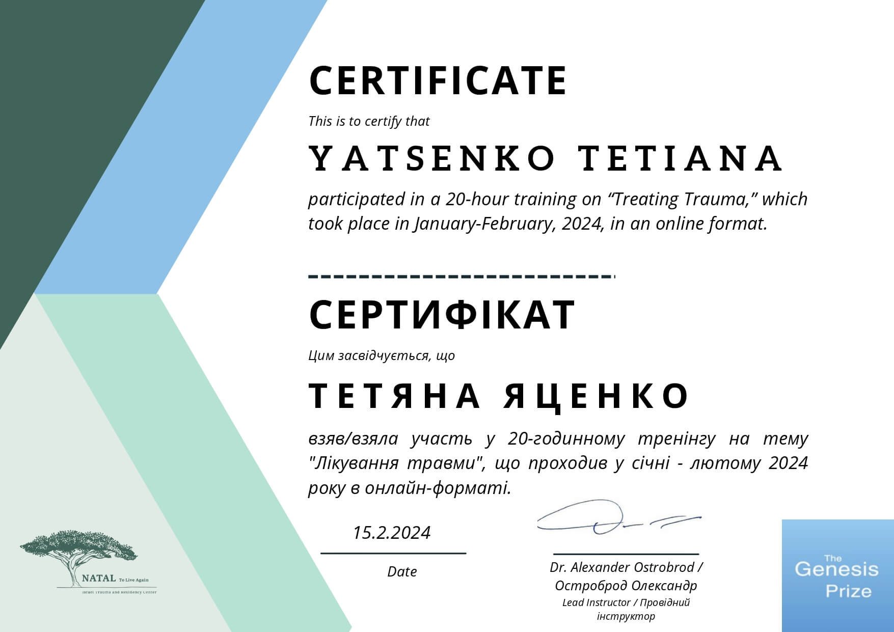 2024 Тренінг "Лікування травми" від Ізраільської організації NATAL Global Resilience